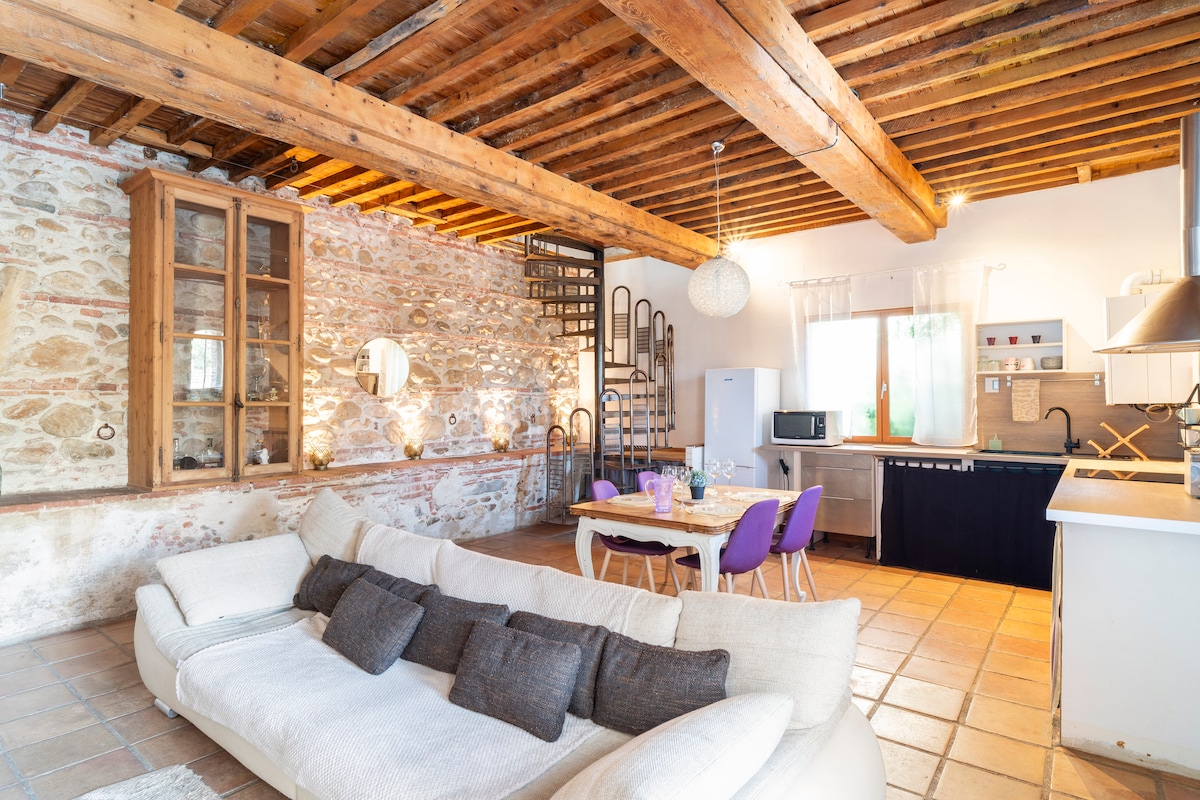 Situada entre el mar y la montaña, la casa se encuentra en Vinça en una zona verde, al pie del lago de Escoumes, Nuestra casa de un solo piso cuya entrada es independiente dispone de una terraza privada + barbacoa, tumbonas: ¡se sentirá como en casa! Nuestra casa está cerca de todas las comodidades y muchos sitios culturales, naturales, etc. La playa de arena del lago está a pocos minutos andando ¡equipada con un parque acuático para grandes y pequeños! pequeños restaurantes en el lugar .