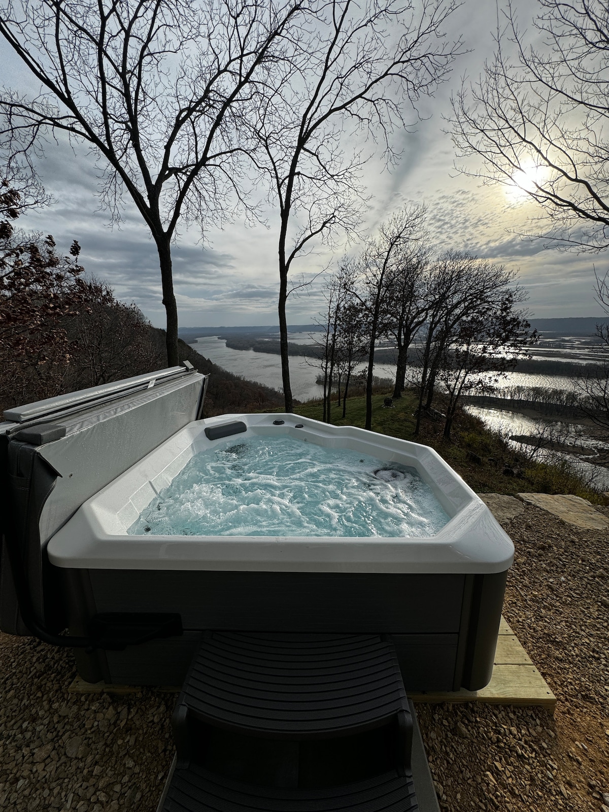1 bedroom 1 bath with loft. Cozy home where you can see Paradise. This memorable place is anything but ordinary. Views for miles of the Mississippi River, bluff tops and you can soar with the Eagles. What a place to relax in the newly added hot tub while you enjoy the view in what is call "God's Country". This is promised to be a one of a kind view. The Deck with comfortable outdoor seating Located in the heart of WIsconsin's Driftless Region. New workout center for all our guest to use.