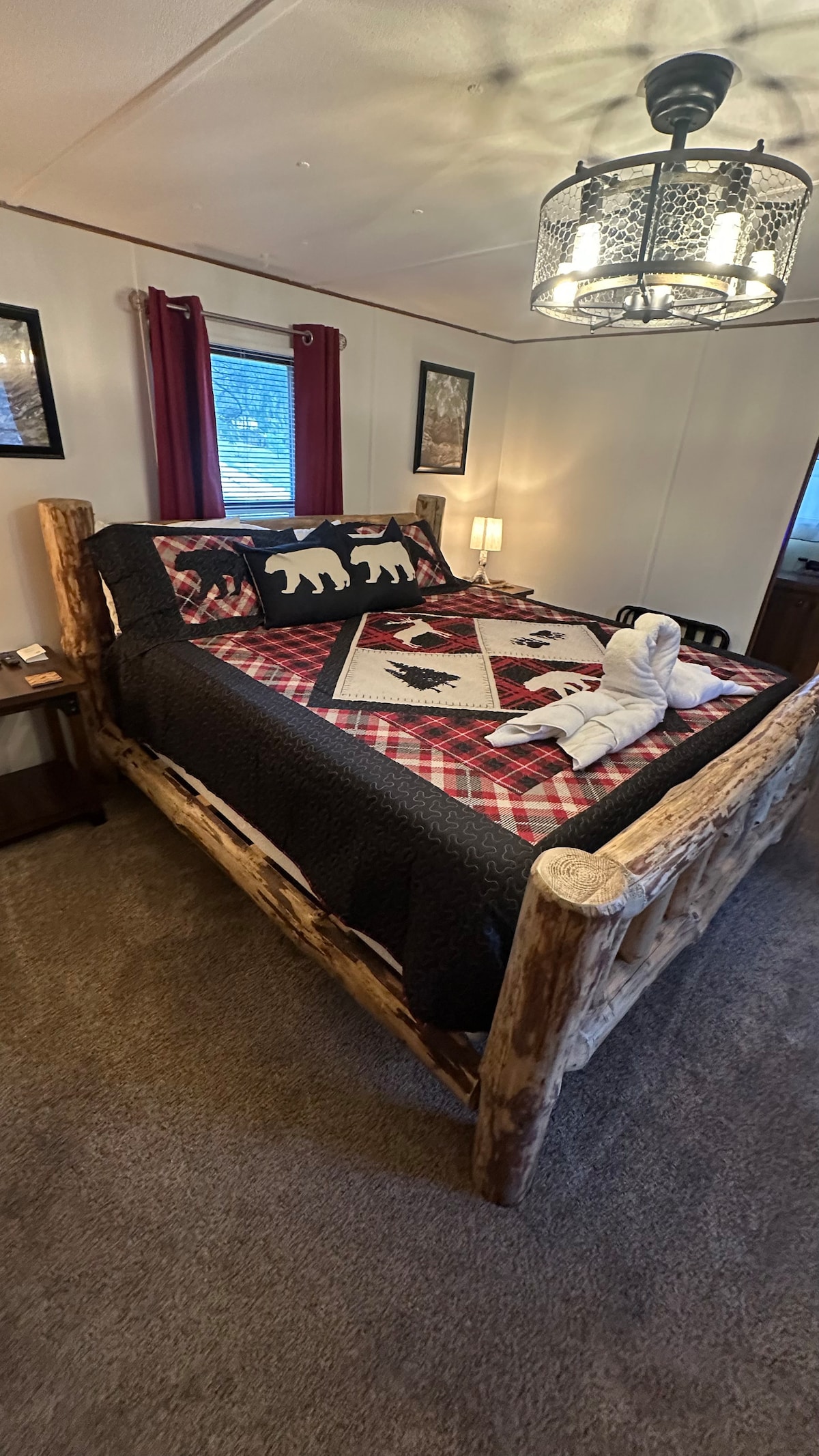 EscÔpate a la relajación pura en "The Haven", una cabaña de lujo de 3 dormitorios con una gran Ôrea de estar al aire libre, parrilla, chimenea y jacuzzi Bullfrog en una terraza envolvente. En el interior, disfruta de las comodidades del hogar con mejoras de primer nivel, una cocina totalmente surtida, asientos excepcionales, TV OLED de 65 pulgadas. Las habitaciones ofrecen hermosas vistas y lujosas camas de marca. Ideal para una escapada romÔntica, vacaciones familiares o un viaje de caza. ”Reserva ahora!