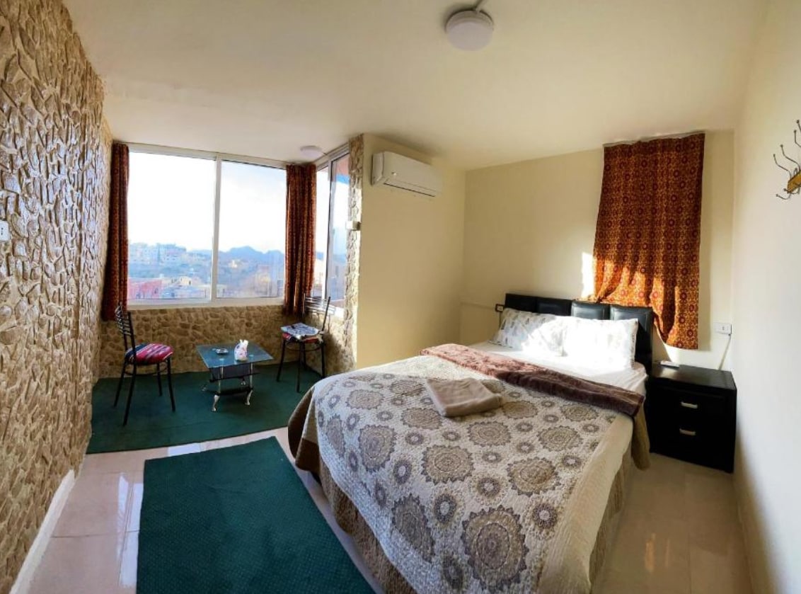 Es una habitación situada en el sótano del Town Season Hotel. Situado en el centro de la ciudad de Wadi Musa, a 1 km del Centro de Visitantes de Petra. El restaurante y la cafetería están en la terraza del cuarto piso. La habitación cuenta con conexión wifi, hervidor de agua para preparar té y café, televisión y aire acondicionado. El baño está bien equipado con bañera/ducha, secador de pelo y artículos de aseo de cortesía.