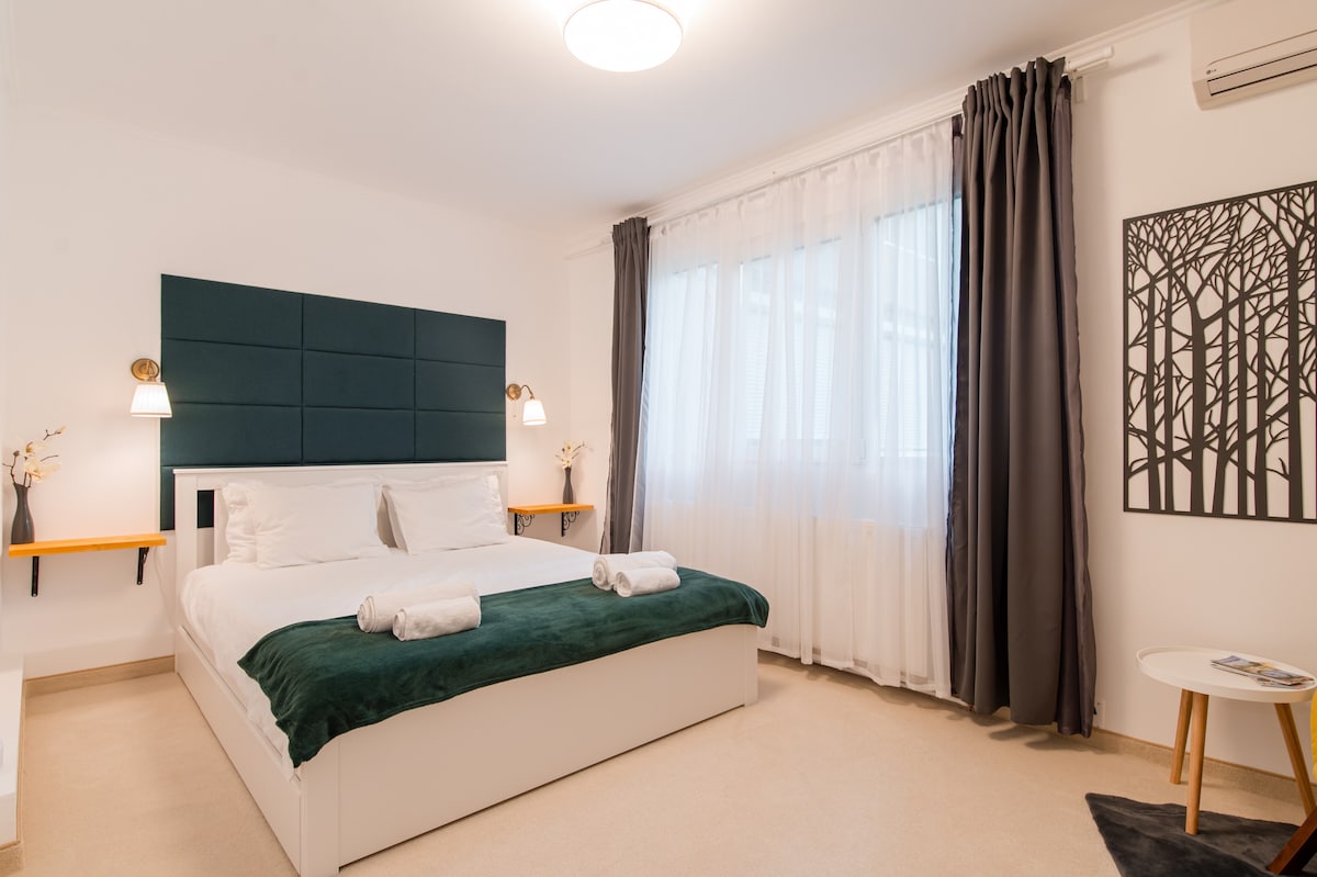 Fabuloso apartamento de dos dormitorios, ubicado cerca del centro de la ciudad y del río Bega (a 10-15 minutos a pie) en un barrio histórico y tranquilo llamado Elisabetin. El apartamento está en la planta baja del edificio, incluye terrazas y vistas al jardín. El diseño interior del apartamento es único, moderno, fresco y te ofrece toda la comodidad y privacidad que puedas desear para unas vacaciones en Timisoara.