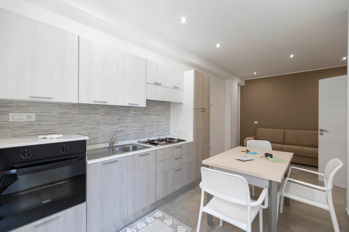 Ideal para pasar tus vacaciones con total relax. Apartamento en edificio independiente con aparcamiento privado, aire acondicionado y TV. A pocos pasos de la estación, a 500 m del centro del pueblo (7 min. a pie) donde podrás pasear por las callejuelas que conducen a las vistas panorámicas y a la catedral o llegar a las playas del Santuario dell'Isola. Habitación doble, cocina-sala de estar con sofá cama doble, zona de lavandería con lavadora. Un balcón único une todo el apartamento.