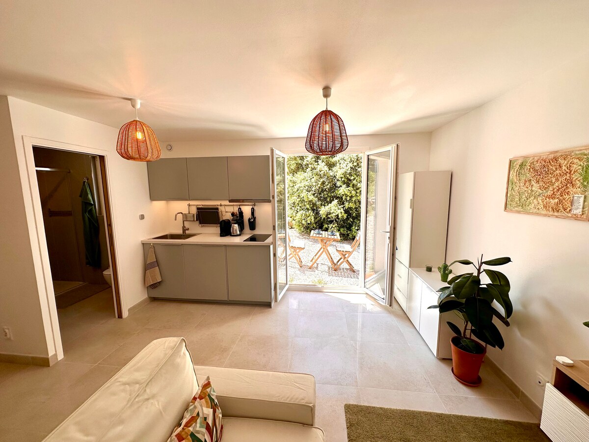 🏡🌳 Bienvenido a un pequeño remanso de paz a estrenar, enclavado en las afueras de un bosque verde. Totalmente equipado, cama doble de calidad, sofá cama, gran ducha a ras de suelo, cocina completa, aparcamiento privado con toma ⚡️para🚙. Disfrute de los huevos frescos de nuestras gallinas, pasee por el bosque, relájese en el jardín. Senderismo y ciclismo desde el alojamiento. A 5 minutos del lago🎣, a 25 minutos de Aix , a 15 minutos de Cadarache🔬, a 45 minutos de la playa🏖️, a 1 hora de los Alpes⛰️, a 1 hora del Luberon 🏞️ y Verdon🛶.