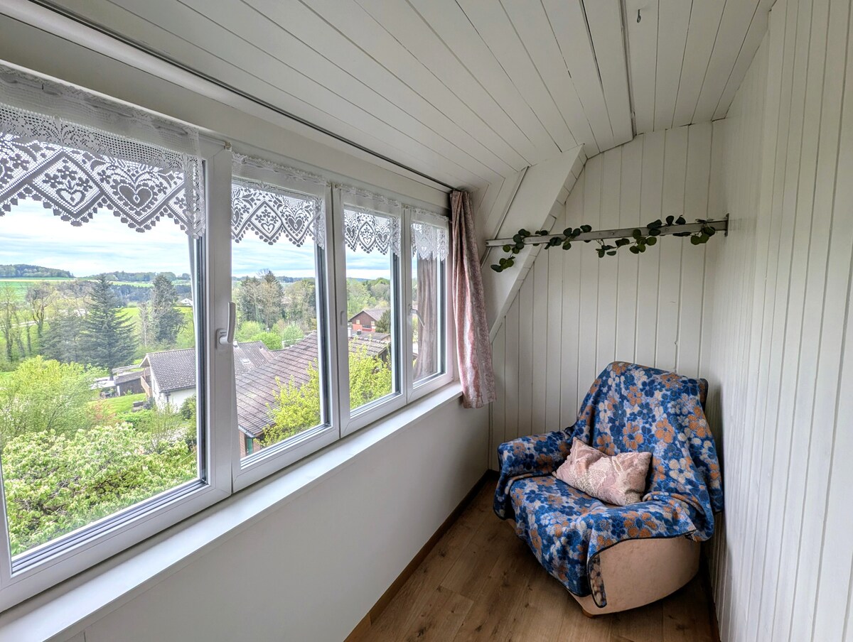 ¡Descubre lo mejor de la naturaleza cerca de Zúrich! Esta gran casa (>200 m2) ofrece tranquilidad a solo 30 minutos del centro de Zúrich en transporte público (20 minutos en coche). Disfruta de una cocina bien equipada, baños de alta gama, una acogedora sala de estar y un jardín de invierno con barbacoa y mesa de billar. Capacidad para 9 personas. Explora el jardín con vistas despejadas a los Alpes. ¡Se proporcionan bicicletas! Escápate a nuestro refugio natural, donde la comodidad de la ciudad se combina con la belleza serena. Reserva ahora y disfruta de nuestro hogar mientras estamos fuera.