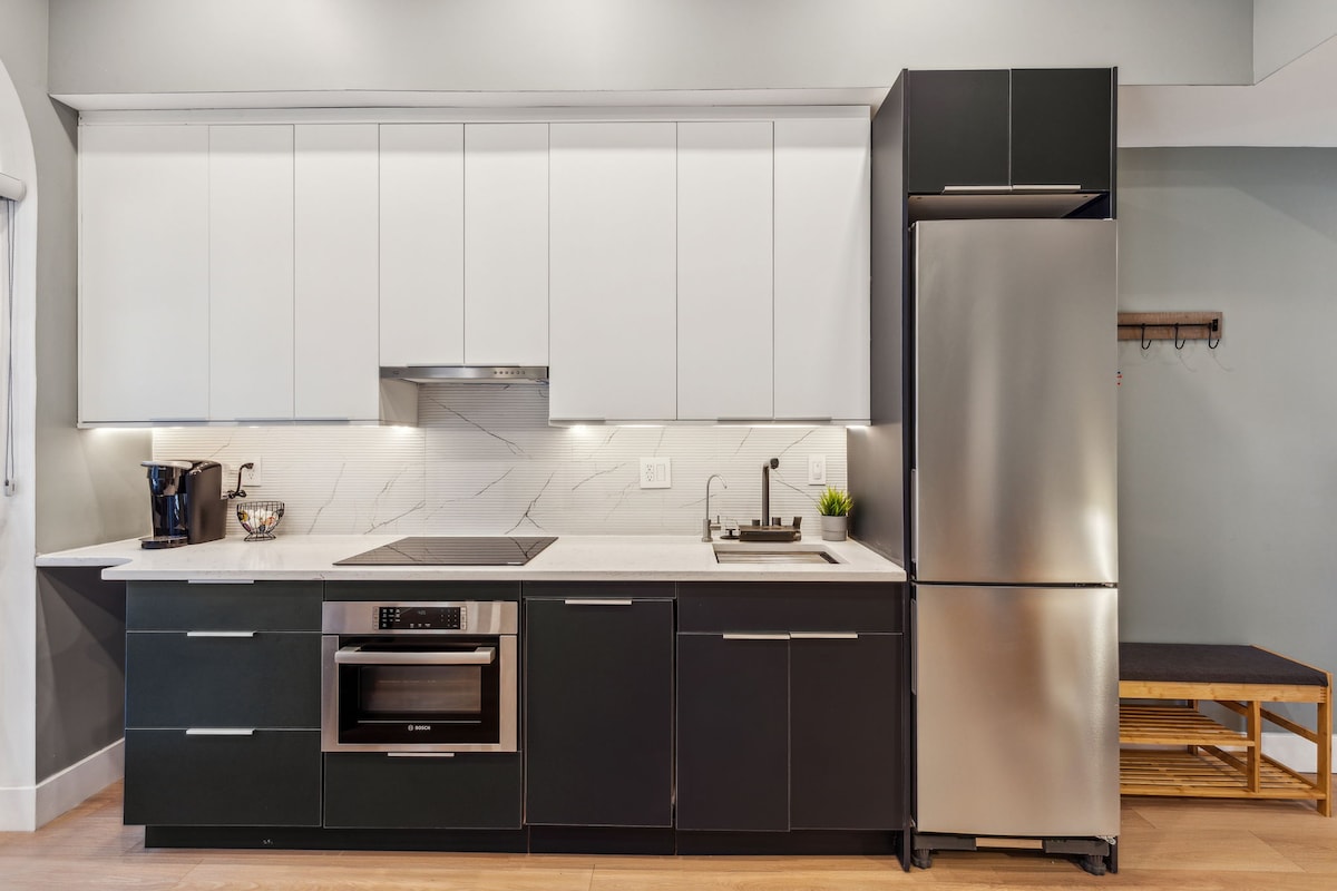 Estudio Art Déco con cocina completa, TV de 60 pulgadas y wifi rápido