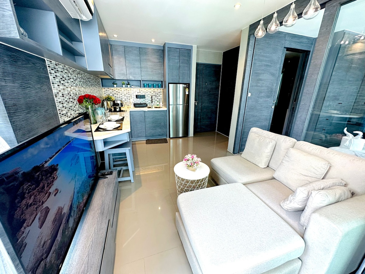 ✨ Aspectos destacados del espacio ✨ · Diseño de espacio eficiente e inteligente: el diseño abierto hace que el espacio se sienta lleno, y los muebles e instalaciones cuidadosamente seleccionados logran todas las funciones de sueño cómodo, cena informal y cocina sencilla en un área limitada. · Ubicación privilegiada: · A 5-8 minutos caminando de la tranquila playa de Rawai, disfruta del mar y del sol en cualquier momento. · A 5 minutos caminando del animado mercado de mariscos de Rawai y del mercado local, desde la mesa del comedor hasta la punta de tu lengua, experimenta el sabor más auténtico. · Cómodo acceso a Promthep Cape y Yanui Beach, la base perfecta para explorar el sur de Phuket. · Instalaciones completas del centro vacacional: disfrutarás de todas las instalaciones de alta calidad del vecindario, incluida la icónica piscina, el gimnasio y la seguridad las 24 horas.El apartamento está equipado con conexión Wi-Fi de alta velocidad, TV inteligente, aire acondicionado y una mini cocina. 🛏 Diseño e instalaciones del apartamento · Zona de dormitorio: equipada con una cómoda cama tamaño queen con ropa de cama de alta calidad para garantizar que duermas bien con la suave brisa del mar. · Zona de salón: hay un pequeño sofá o sillón frente al televisor inteligente, que es una esquina para relajarse. · Comedor/cocina: compacta pero totalmente funcional, con una pequeña nevera, microondas, cocina de inducción, hervidor de agua, utensilios de cocina básicos y vajilla para satisfacer tus necesidades para el desayuno, comidas ligeras o preparar mariscos. · Baño: baños húmedos y secos separados con ducha caliente, secador de pelo y artículos de tocador básicos.