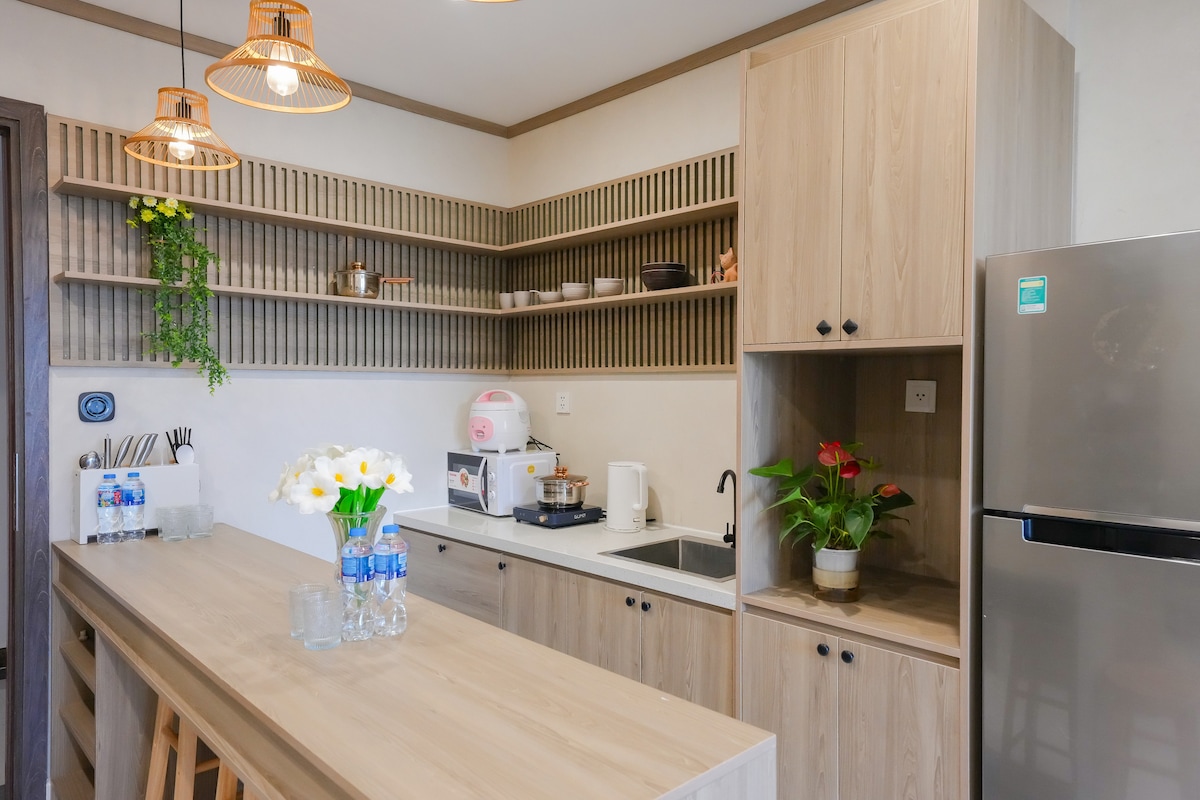 Hola desde 🍃Ben's Homes🍃 Nuestro departamento está encantado de dar la bienvenida a los días brillantes de verano. Estudio TV 55” netflix y chill. Departamento con deslumbrante vista al atardecer de 8p, vista interna a la piscina. Cocina lista, nevera, aceite esencial natural. Cerca de Vicom Mega Mall, CGV y también Vin Wonder. Listo para alquilar un paquete de 3 horas. También estamos dispuestos a prestar bicicletas para visitar Vinhomes. El departamento con un tono fresco y tranquilo, sofá suave, árboles verdes decorativos y muchos libros están disponibles para tu experiencia.🍃