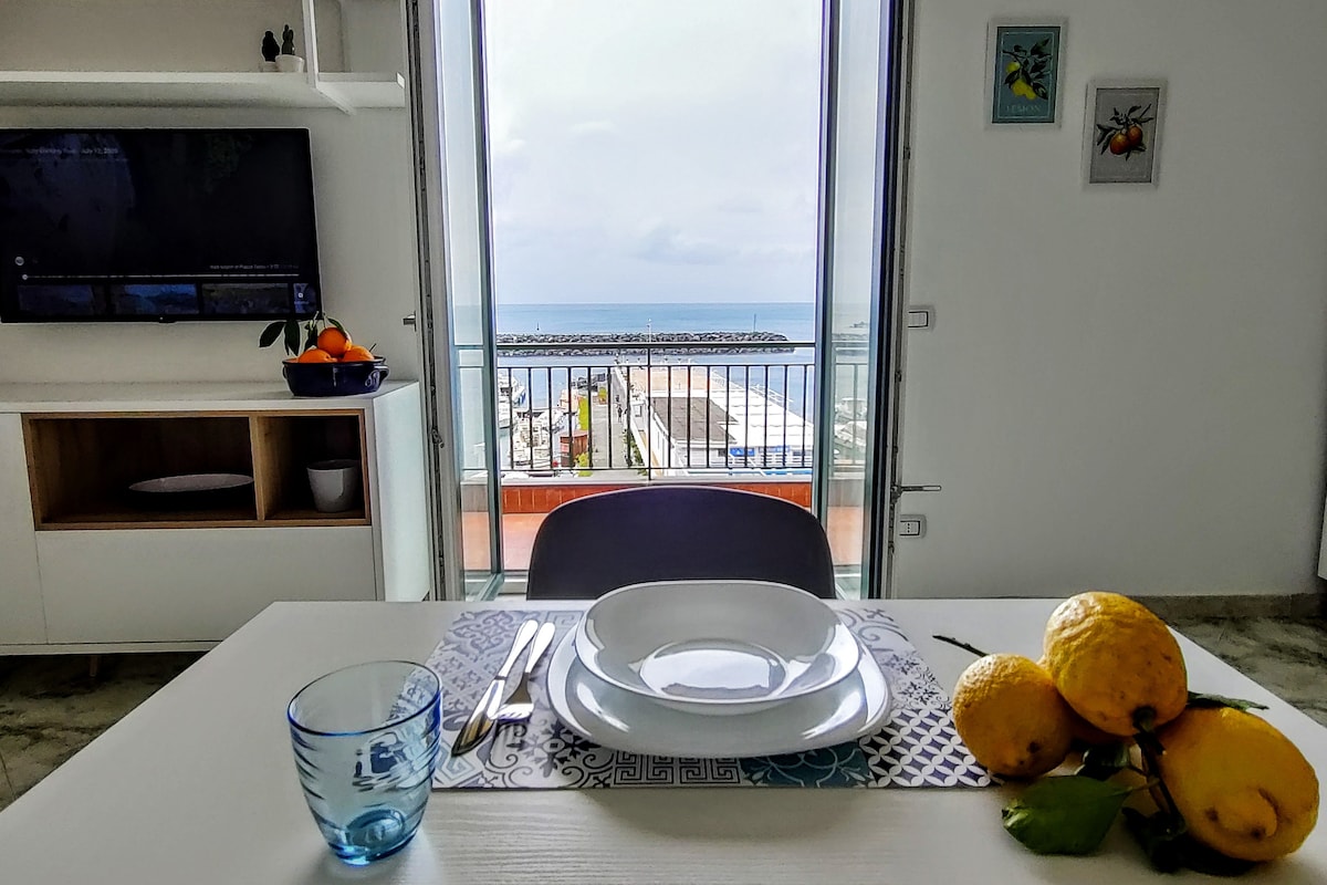 Apartamento con vistas panorámicas al mar, espacioso, luminoso, ideal para una estancia cómoda a poca distancia a pie del centro de la ciudad y de la playa. Dos dormitorios, una sala de estar luminosa con sofá cama doble, dos baños y cocina totalmente equipada. El apartamento, por su ubicación, ofrece a los huéspedes la oportunidad de ver la puesta de sol frente al golfo de Nápoles. Se puede llegar a las playas a pie o en ascensor. Hay aparcamiento de pago a 20 metros La tarifa de limpieza (60,00 euros) + el impuesto municipal deben pagarse en efectivo a la llegada.