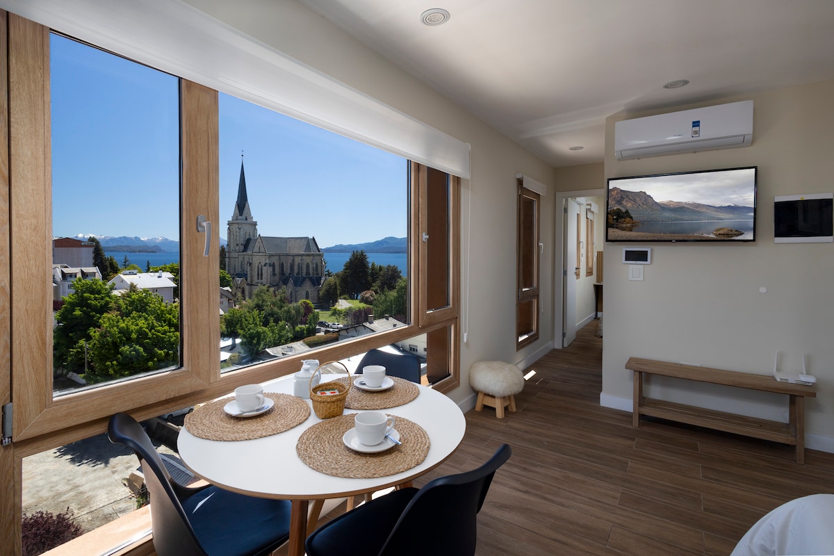 🌅 Viví la mejor vista de Bariloche en este apartamento único. Te deslumbrara! Despertá con una vista plena al lago y paisaje de ensueño. Ideal para dos, ofrece un dormitorio acogedor, cocina moderna integrada al salón y baño amplio, todo bañado por luz natural y con vistas espectaculares. Disfruta del confort de la losa radiante, en un refugio de tranquilidad, fuera del bullicio del centro, es el escape perfecto. 🖥️ ¡Streaming gratuito! 💌 Tenemos más unidades. ¡Escribinos! ⭐ Top Airbnb