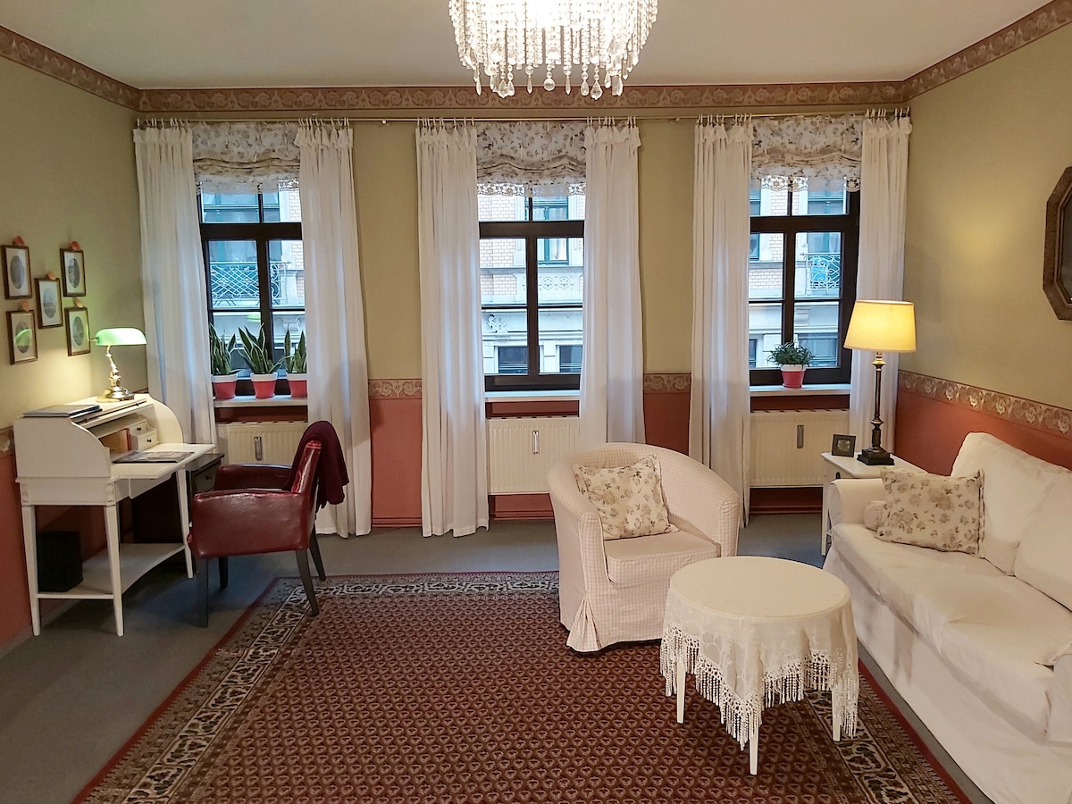 Hola y bienvenido a tu nuevo alojamiento vacacional en el corazón de Dresde. Puedes esperar un apartamento modernizado de 3,5 habitaciones muy elegante y de alta calidad con 2 dormitorios, una cama doble adicional en la sala de estar con vistas al jardín histórico. Disfruta del sol de la tarde en la terraza con una cena o con una copa de vino y una chimenea en el jacuzzi. Encontrarás todo lo que necesitas para pasar un rato inolvidable en Dresde en el sitio.