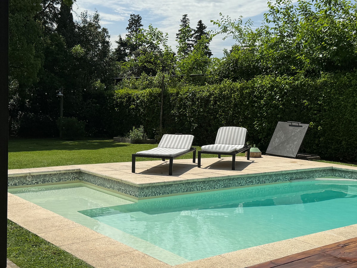 Alojamiento de diseño, único y tranquilo. Vas a poder relajarte en nuestro jardín con una hermosa piscina, contemplarla desde el living o la galería. Preparar tus comidas favoritas en una super cocina o jugar o mirar TV en un lindo play-room. Ubicada en el exclusivo barrio de Golfers, donde encontrarás las mejores arboledas y la combinación perfecta de tranquilidad y deporte: tenis, pádel, golf, polo, fútbol ¡y mucho más!