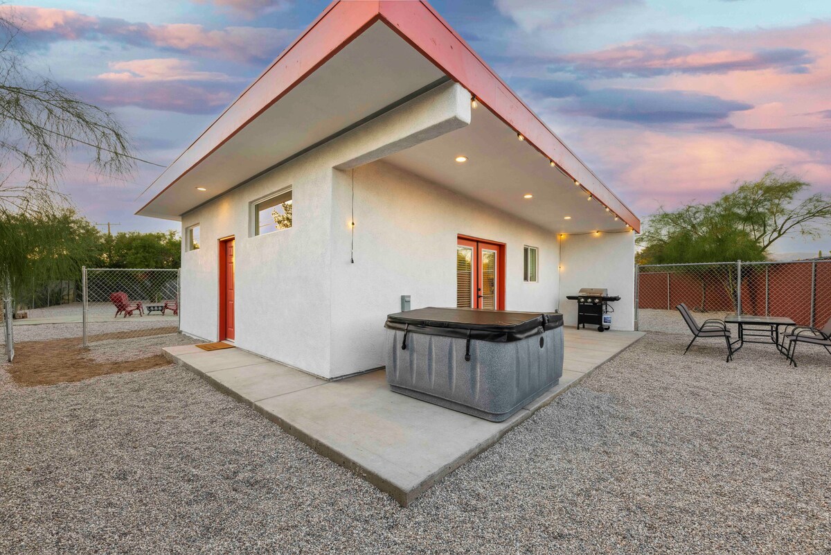 ☀Cocina y baño únicos y renovados☀ Casa Sam Hughes de 1930 de 2 dormitorios ☀SPA☀ 1 de los vecindarios más transitables, seguros e históricos de Tucson 2 cuadras 2 UA ¡Airbnb no me deja darle la cantidad de estrellas que se merece!-un huésped ☀ Cocina de diseño personalizado bien surtida ☀ Gran patio privado cerrado + jardín de flores ☀ ¡Camas cómodas para una buena noche de sueño! ☀ Amplio 1200 pies cuadrados ☀ Estacionamiento cubierto ☀ ¡Superanfitriones de 9 años! Las familias y parejas disfrutan de nuestro jacuzzi y barbacoa Limpieza ★antiviral★ ¡Te damos la bienvenida a nuestra alegre escapada a Tucson!
