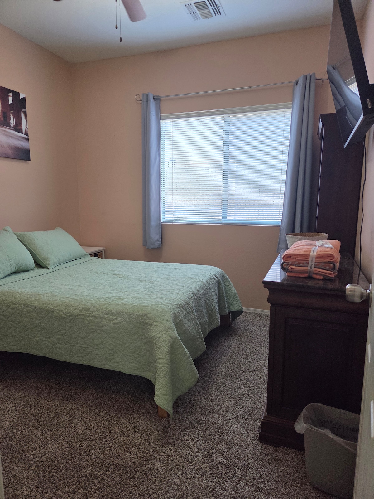¡Te damos la bienvenida a tu escapada a Arizona! 🌵 Disfruta de esta nueva casita en la frontera de Queen Creek y San Tan Valley, a minutos de Schnepf Farms, Queen Creek Olive Mill y tiendas locales. Relájate con un televisor inteligente de 75 pulgadas, cocina totalmente surtida y lavadora y secadora privadas. Tiene capacidad para 4 huéspedes con un dormitorio, un baño y un acogedor espacio habitable. Accede al lago comunitario, parque infantil y tirolina, todo dentro de un vecindario seguro y cerrado. Perfecto para familias, parejas o viajeros de negocios.