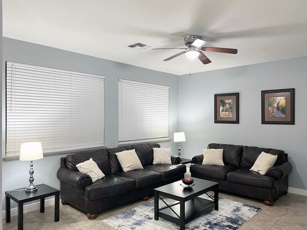 Esta casa adosada de 4 dormitorios se encuentra en una nueva y tranquila comunidad cerrada. La casa ha sido amueblada recientemente y cuenta con una excelente casa club con piscinas climatizadas, spas, parrillas para barbacoa, etc. La casa es perfecta para una escapada relajante de fin de semana, unas vacaciones de una semana o una estancia de un mes. Esta zona se encuentra a media milla de la US 60, a 2 millas del tren ligero, a 4 millas del Loop 101, del centro de Mesa y del Loop 202.