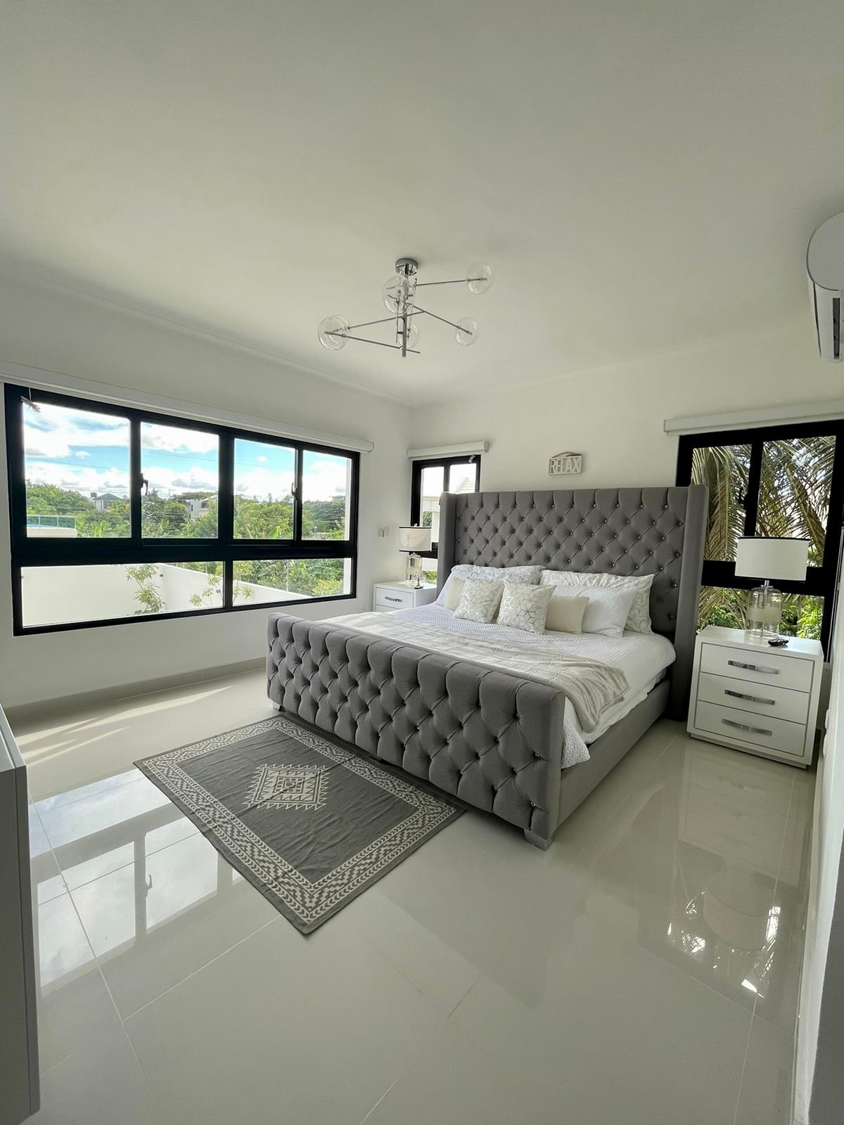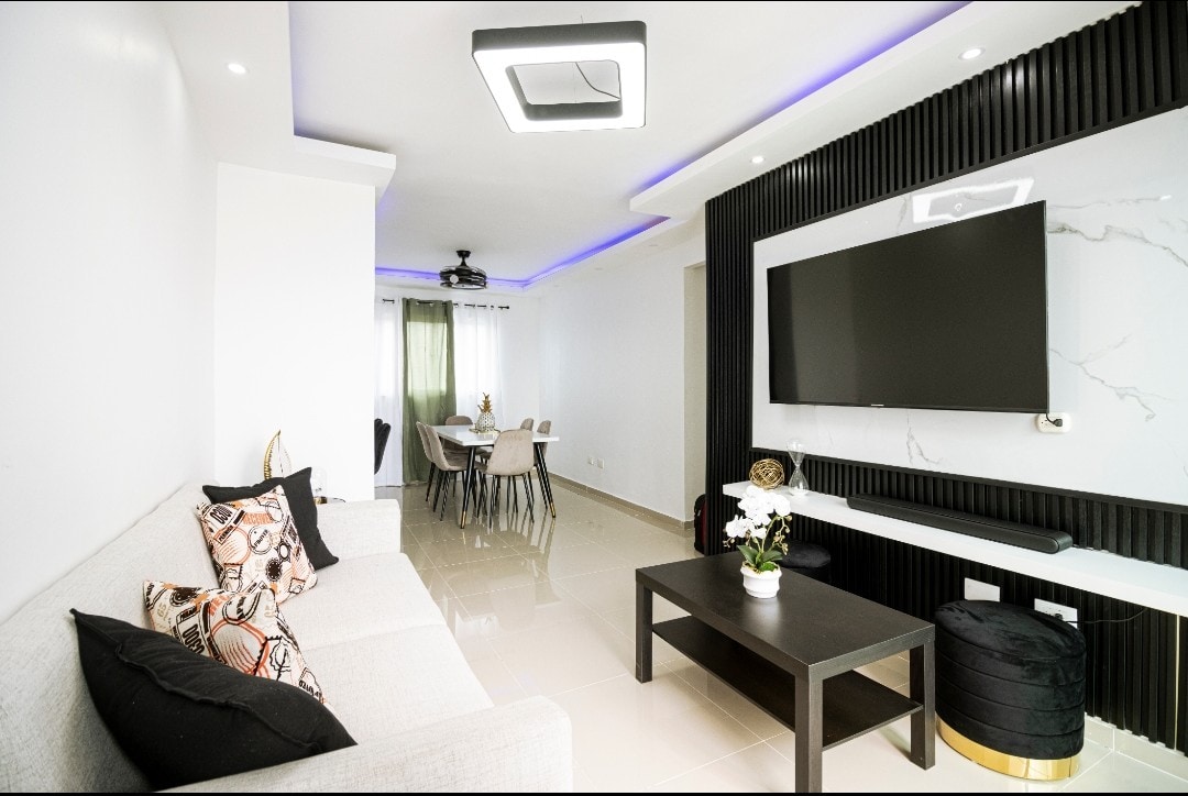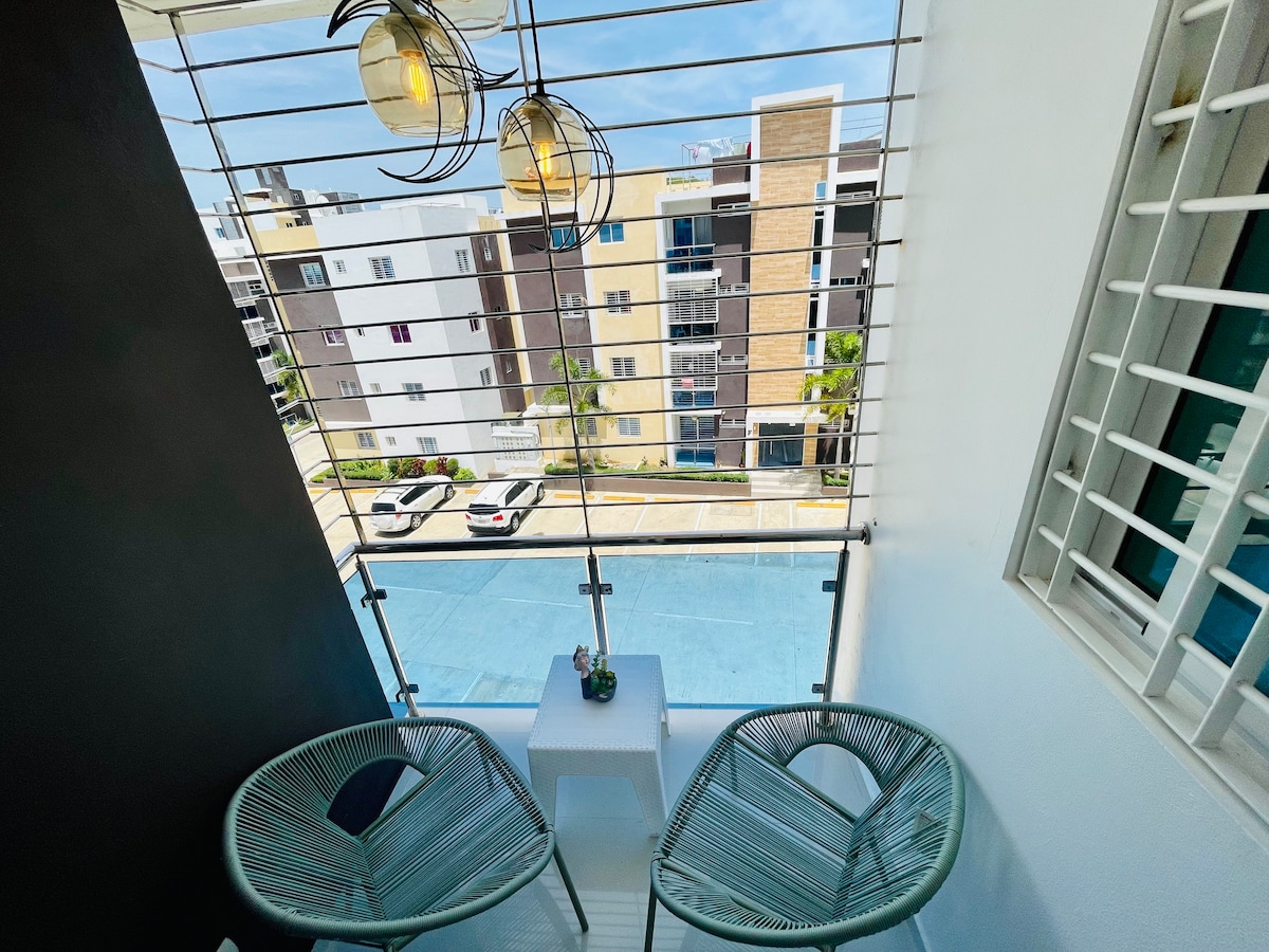This is a brand new, impeccable, clean and luxurious apartment located at Thomen Santiago. Forget your worries in this spacious and serene space & relax. It is fully equipped with everything you need to make your stay memorable. Large balcony, air conditioners in the living room and each bedroom, 65” Smart TV in the living room and smart Tvs in each bedroom, WiFi, Hot water, and full kitchen with stainless steel appliances.