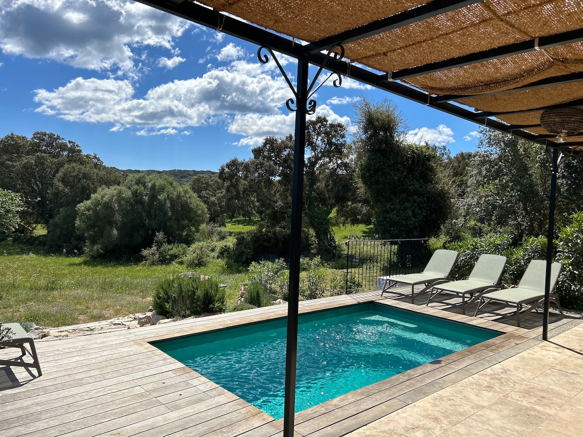 Cette bergerie en pierres de 123m2 offre une superbe vue sur la montagne, et dispose d'une piscine privée et chauffée Au coeur d'un lotissement calme, elle est à 5min du village de Sotta, 15min de Porto-Vecchio et des plages La villa individuelle est équipée de trois chambres et trois salles d'eau, entièrement climatisée. Il y a la télévision dans le séjour et dans les chambres Internet wifi, cafetière Nespresso, cuisine d'été avec plancha, évier et réfrigérateur, salon d'extérieur, transats