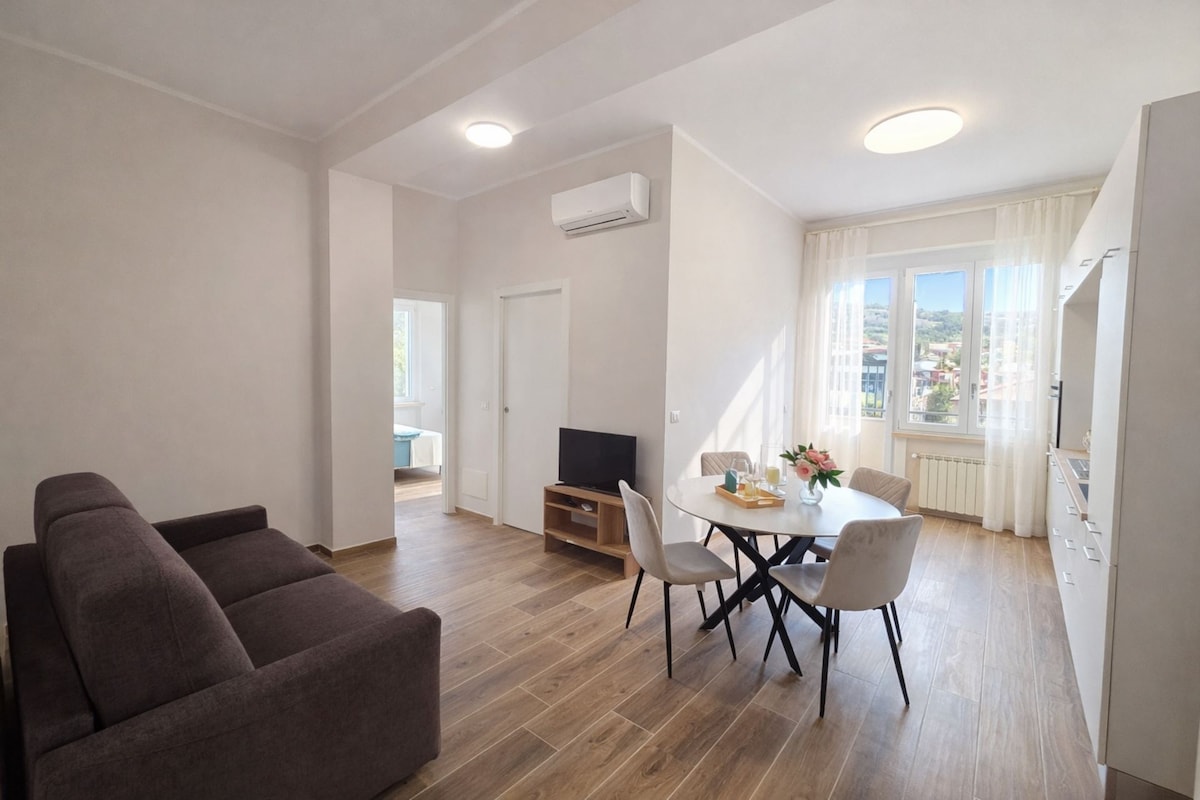The “Cavalluccio Marino” apartment is a two-room apartment located on the first floor of a building without a lift in the center of Piazza Fermi. Far from the railway, its strategic position allows you to comfortably access the beach, enjoy an evening walk and easily reach the main services.