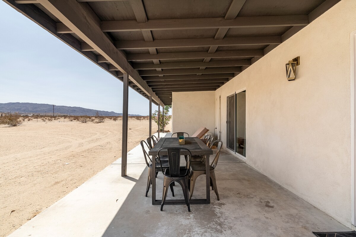 Immerse yourself in a uniquely restored 1930's adobe on 5 acres and 10 minutes from Joshua Tree Park. Feel at home with all modern comforts and expansive views under the stars. · Fully equipped kitchen · Multi-zone Sonos speakers · Home theater · Vintage dining booth · Vinyl record collection · 200 Mbps WiFi inside & out 7 min » 29 Palms shops & restaurants 12 min » Joshua Tree Park North Entrance 25 min » Downtown Joshua Tree Add to your wishlist by clicking the ❤️ in the upper-right corner.