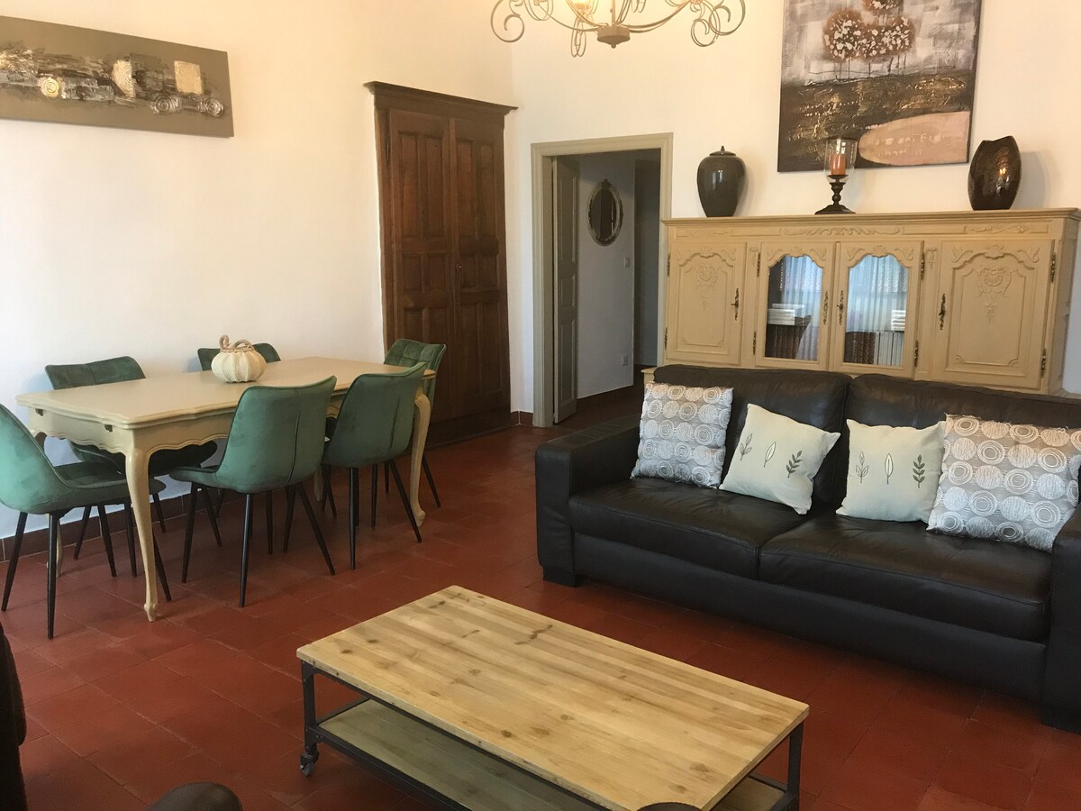 Apartamento reciente y espacioso en una parcela de 2 hectáreas, dispondrá de: Una cocina totalmente equipada abierta a una bonita sala de estar Un dormitorio y vestidor contiguo Un cuarto de baño con bañera de esquina, ducha a ras de suelo e inodoro. Una gran terraza con vistas a las montañas y a la puesta de sol El apartamento está climatizado y equipado con TV y conexión wifi.