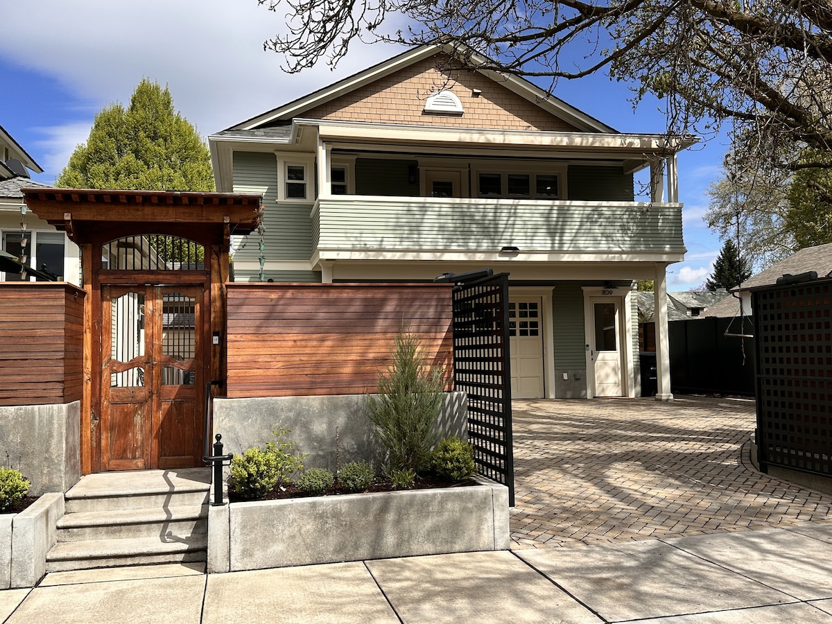 CASA LUNA ~ Bienvenido a nuestro lujoso bungalow con suelos de bambú, comodidades modernas y un jacuzzi de hidromasaje Hot Springs de 52 chorros. Disfruta de una ducha de efecto lluvia tipo spa con azulejos italianos con textura de lluvia. Dos camas tamaño queen en habitaciones con cerradura, ventanas y vegetación. Cocina, bar y comedor abierto con electrodomésticos de alta gama y entretenimiento en un televisor 4K de 65 pulgadas. Amplio porche trasero para vivir al aire libre y jacuzzi privado. ¡Experimenta la máxima relajación a poca distancia a pie de WWU y a 5 minutos en coche del centro de Walla Walla!