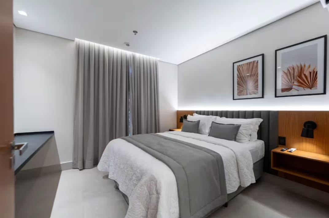 Apartamento en planta baja, alojamiento cómodo y seguro, excelente ubicación con estacionamiento. Tiene capacidad para 6 personas. Hay 2 dormitorios, 1 suite con TV, 1 dormitorio con 2 camas, 1 sofá cama para 2 personas; 1 baño adicional, secador de pelo y comodidades, caja fuerte, gimnasio, sala de estar con sofá cama, TV, piscina infinita, taza con mesa, microondas, minibar, restaurante, bar, sauna, recepción 24 horas. todo el aire acondicionado, ropa de cama completa, Este resort no tiene uso diurno,
