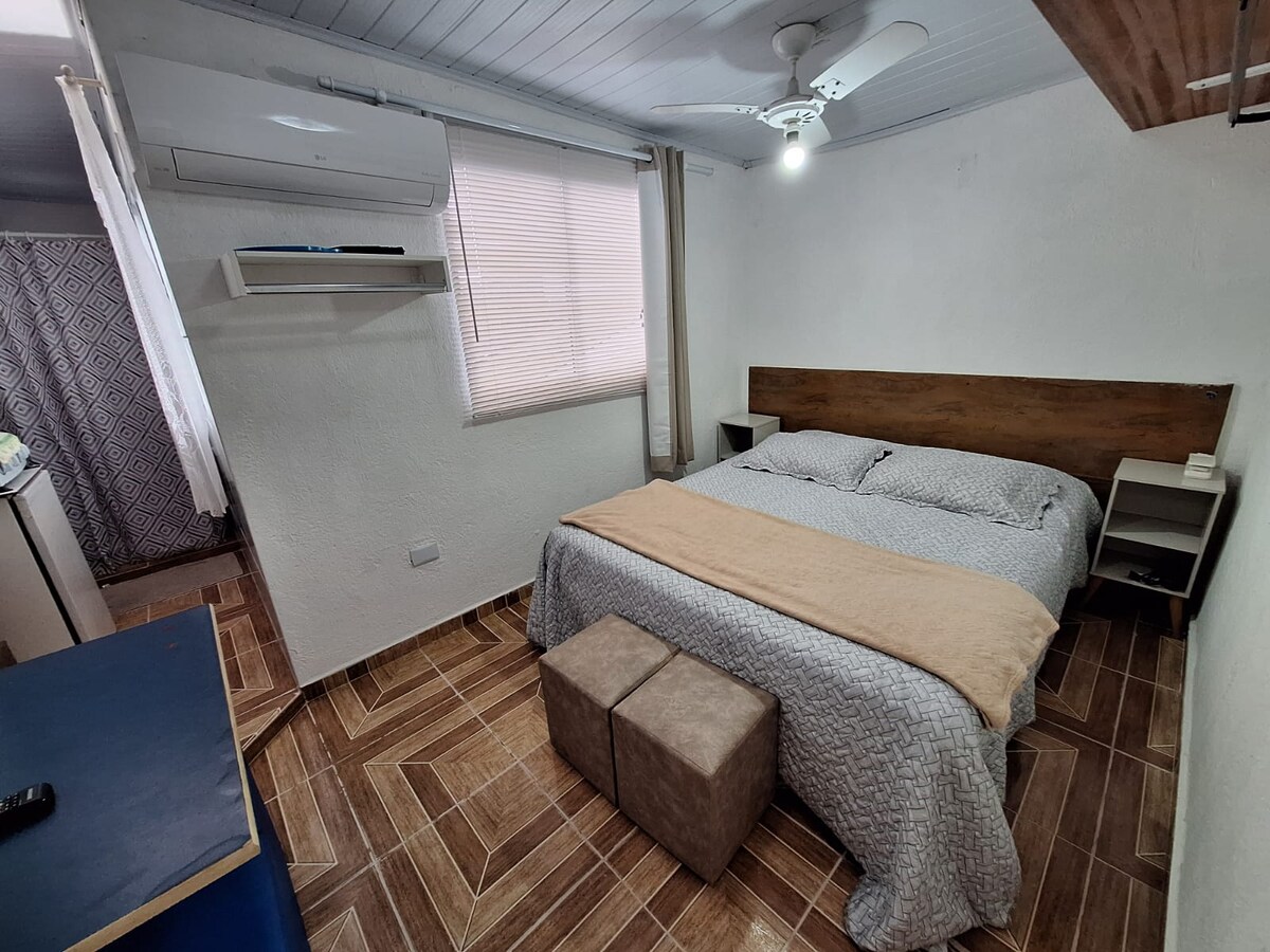 Suite amueblada, - Cama matrimonial. - Beliche - Aire acondicionado - Televisión - Netflix. -Ventilador - Internet -Microondas - Utensilios de cocina -Cafeteira - Refrigerador. -Chuveiro Eletrico - Garaje cubierto para auto y motocicleta - También estamos disponibles para quienes necesiten venir a la ciudad por trabajo. A solo 15 minutos en coche o motocicleta de las playas Pitangueiras, Asturias y Enseada no Guarujá SP, entorno totalmente familiar. Relájate con toda la familia en este tranquilo alojamiento