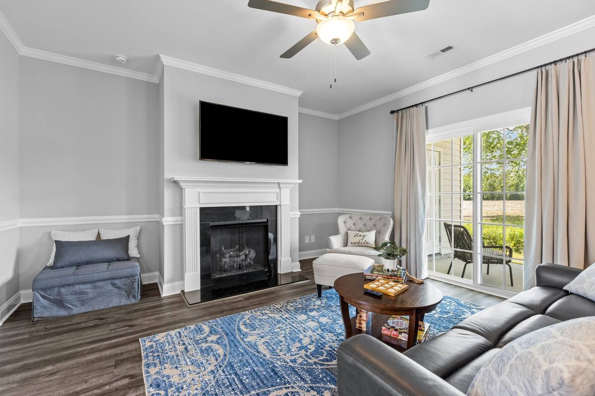 Disfruta de una experiencia elegante y relajante en este céntrico alojamiento. Unidad final de una sola planta en un pequeño complejo tranquilo a pocos minutos de excelentes restaurantes, tiendas, ECU, el centro de la ciudad o Vidant. (¡A menos de 2 millas de ECU!) Dormitorio principal con cama tamaño king y gran baño en suite con lavabos dobles. Segundo dormitorio con cama tamaño queen. Televisores inteligentes en ambos dormitorios y sala de estar con aplicaciones de transmisión, la televisión de la sala de estar también puede acceder a todos los canales principales a través de YouTube TV con nuestro inicio de sesión.