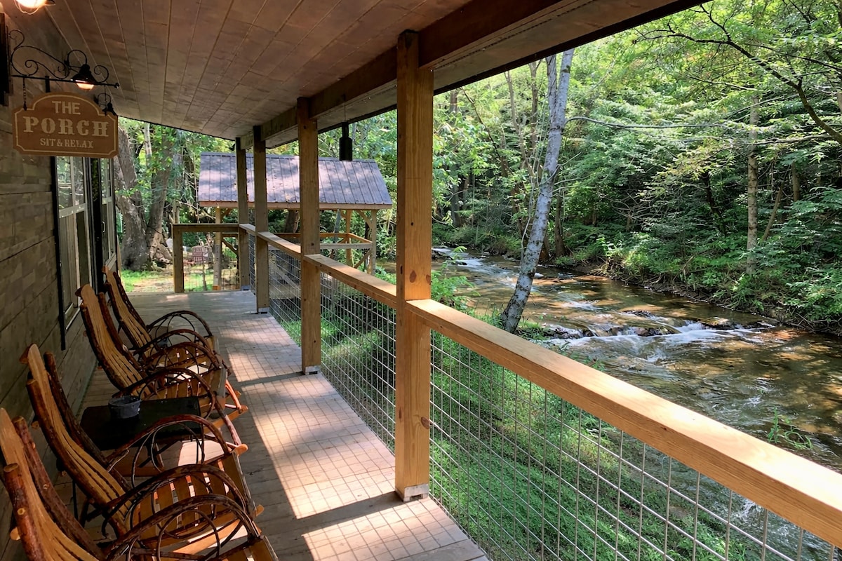 Old Buck's Riverfront Refuge soothes the soul surrounding you in total privacy with towering trees and the rushing Little Pigeon River that runs along the side of the cabin. Awaken to the sounds of the river or let it lull you gently to sleep. Perfect private refuge for a honeymoon, family, get away from work, or just a little relaxation. Only 20 minutes from downtown Gatlinburg or Pigeon Forge attractions. Great for honeymoon, special occasions or family fun. 2nd bedroom Roku TV 50 in