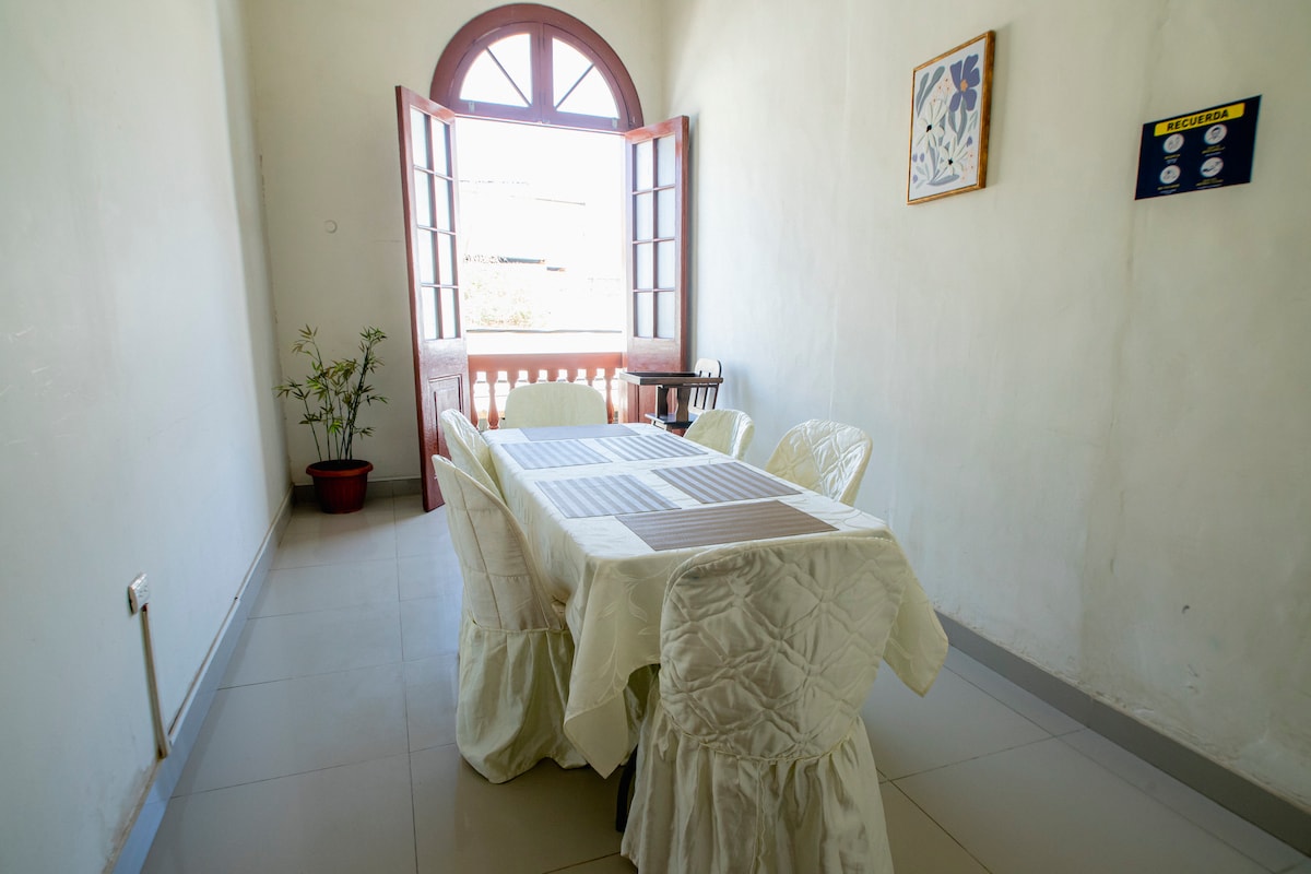 Disfruta del centro de la ciudad de Piura, a un par de cuadras de la Plaza de Armas y cerca de restaurantes, bancos, tiendas de moda y fácil acceso al transporte público y privado. Te hospedarás en una cómoda y amplia habitación privada, cuenta con una cama de dos plazas, ventilador, TV con cable, wifi gratuito y closet. Incluye desayuno para que tu día sea aún más excepcional. Ideal para ejecutivos y viajeros que deseen un lugar tranquilo para descansar.