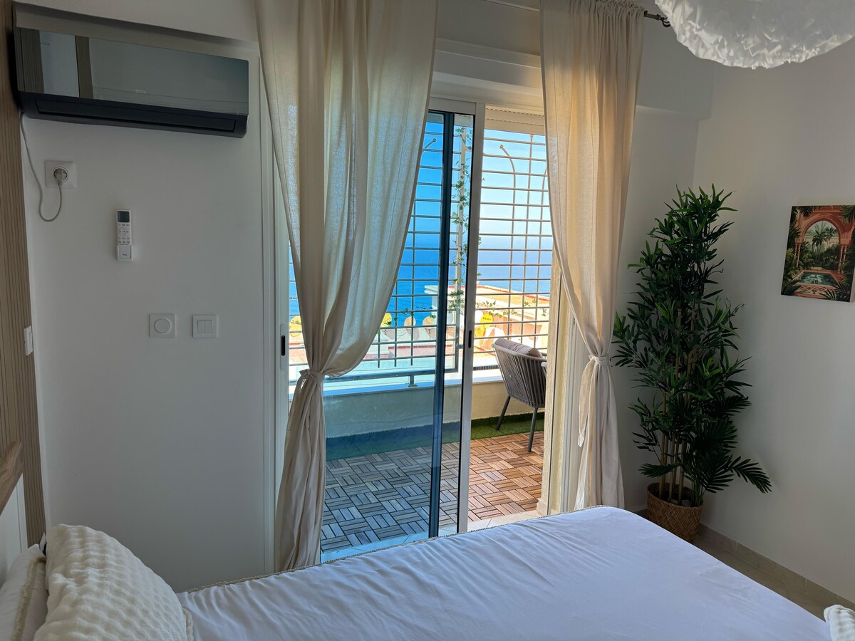 Relájate con toda la familia en este lugar tranquilo para hospedarte. ✓1 habitación 🛏️ ✓1 baño 🚿 Cocina ✓ moderna 🍲 ✓ Sala de estar🛋️ ✓ Wifi 🛜 ( fibra óptica 200 méga ) ✓ Televisión inteligente 📺 cámaras ✓ de supervivencia 📹 ✓ Terraza con vista panorámica❇️🌷 🌅⛴️🚣🏾 ✓ Puedes disfrutar haciendo barbacoa mientras observas el mar.🚣🏾🌅 Está a 5 minutos de Cala Bonita 🌅 en auto A 6 a 7 minutos del centro, quemado. Solo para parejas familiares y mariadas. No está permitido fumar ni beber en el interior.