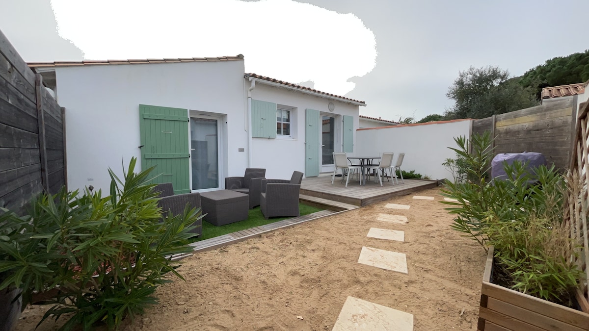 Nuestra casa es cálida, funcional, con un pequeño jardín. Se encuentra en Sainte-Marie-de-Ré, en un callejón típico de la isla de Ré, a 500 metros de la playa y a 200 metros de la plaza de Antioquía (donde encontrará todas las tiendas: panadería, carnicería, quiosco, restaurante, alquiler de bicicletas...). Esta casa tiene capacidad para 4 personas. Consta de una hermosa sala de estar, una cocina equipada, 2 dormitorios, un baño y un aseo separado. El jardín arbolado es muy agradable.