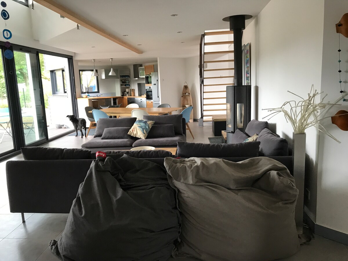 Villa de arquitecto nueva de 170 m², clasificada con 5 estrellas, alojamiento turístico amueblado, cerca de la playa, los comercios y el bosque. 4 habitaciones con aire acondicionado con 4 baños privados. El luminoso salón se abre a la terraza gracias a los grandes ventanales con galandage, para una verdadera vida en el exterior. Terraza de madera orientada al suroeste, piscina climatizada y segura. Entorno tranquilo entre la naturaleza y el mar. Servicio de conserjería incluido para una estadía con todas las comodidades.