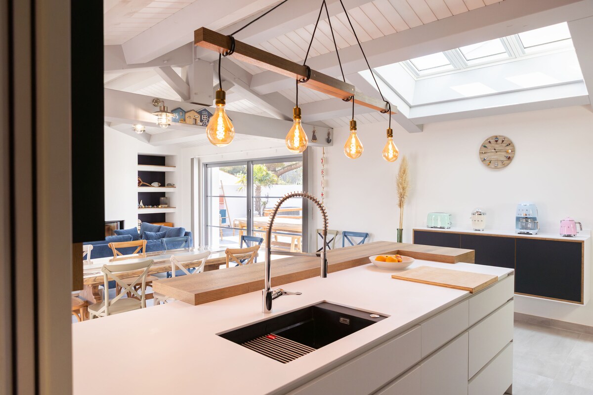 El terreno de 1300 m2 se encuentra en la primera fila de la costa salvaje de St-Denis-d'Oléron, a 50 metros del mar. A través de una puerta privada se accede al océano cruzando la excepcional zona de la duna con vegetación con vistas al faro y a las puestas de sol. Tienes acceso privado a una piscina infinita de 8 metros que se calienta eficientemente con una cubierta solar, una cancha de petanca, amplias terrazas/solárium con barbacoa (más de 140 m2), un parque infantil con tenis de mesa y dardos, y bicicletas disponibles de forma gratuita.