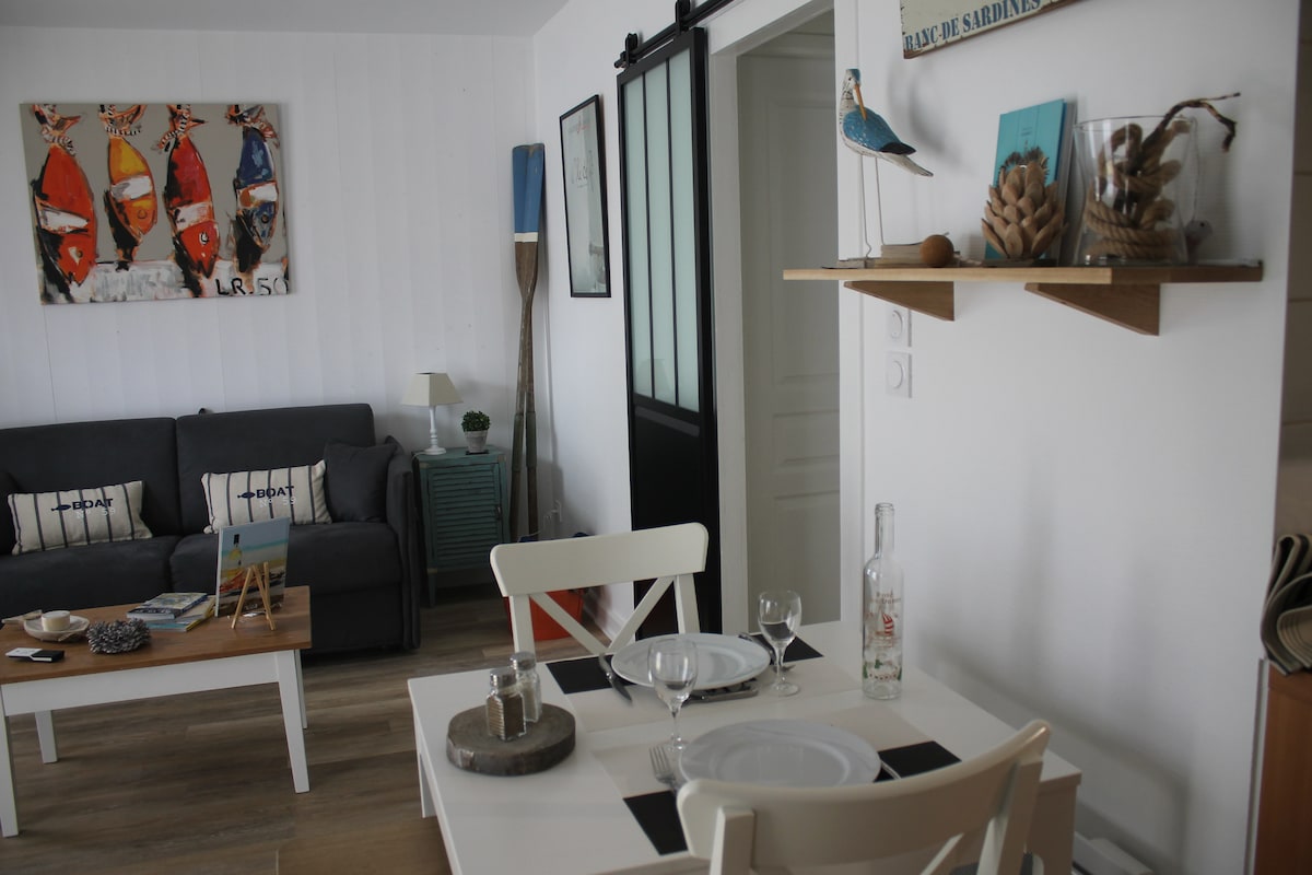 Auténtica casa de pescadores clasificada 2* a 2 pasos del puerto, del mercado cubierto y de los comercios. Camas hechas a su llegada, ropa de cama incluida. El encanto de esta casa se retaise a la ubicación privilegiada. Se beneficiará de 2 habitaciones grandes con ropa de cama (140x190), un cuarto de baño con Velux eléctrico. Bajo petición y sin cargo adicional, cuna, bañera y trona para bebés Una barrera de seguridad para las escaleras.
