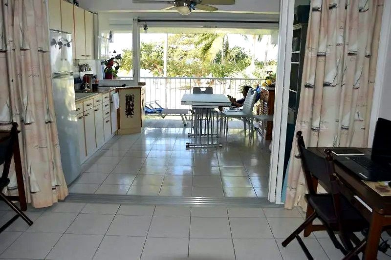 Excelentes evaluaciones. de los inquilinos: T1 bis de 39 m2 situado a 40 m de la hermosa playa del Otro Borde bordeado de cocoteros, en el Moule - con acceso directo al mar por puerta - en el primer piso de una residencia segura con jardín, frente a la laguna natural del océano Atlántico. Muy luminoso y ventilado por los vientos alisios, le garantizará una estancia bañada por el sol.