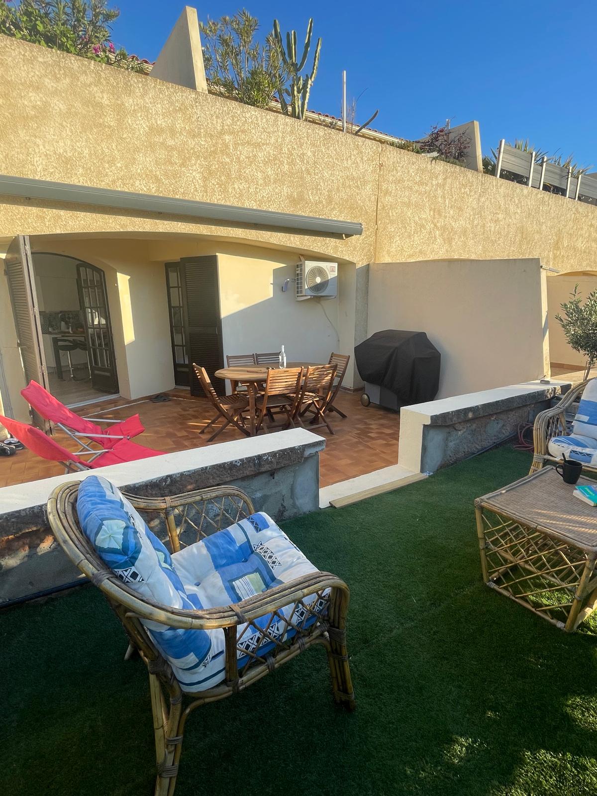 Casa de 35 m2 reformada, con dormitorio, sala de estar, baño con ducha, cocina equipada. Y 10 m2 adicionales para un segundo dormitorio en altillo de 1,60 m de altura. Hermosa terraza de 20 m2 con vistas a la Marina de Sant Ambroggio, luego jardín de 90 m2 con barbacoa... la playa salvaje está a solo 3 minutos a pie , y 10 minutos para la playa de arena, el puerto deportivo, pescadería, panadería , supermercado, prensa, estanco, restaurantes, carnicería... aeropuerto de Calvi a 10 minutos , y 1h10 de bastia