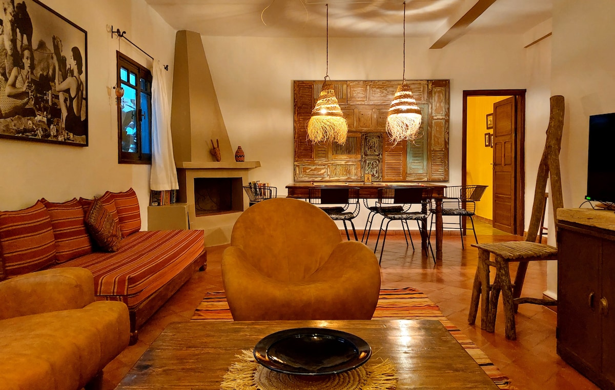 Studio atypique et lumineux sur un grand rooftop féerique privée, au sommet de La Casa Guapa. Chambre cosy avec lit king-size, salle d’eau, cuisine extérieure en bois sous pergola, vue sur la médina et l’océan. Idéal pour une escapade à deux, au calme, en pleine lumière dans un lieu magique et atypique. Coin repas, transats, Wi-Fi. Situé dans un quartier authentique et vivant, à moins de 10 min de la plage et 20 min de la Médina. Services sur demande : transferts, massages, activités...