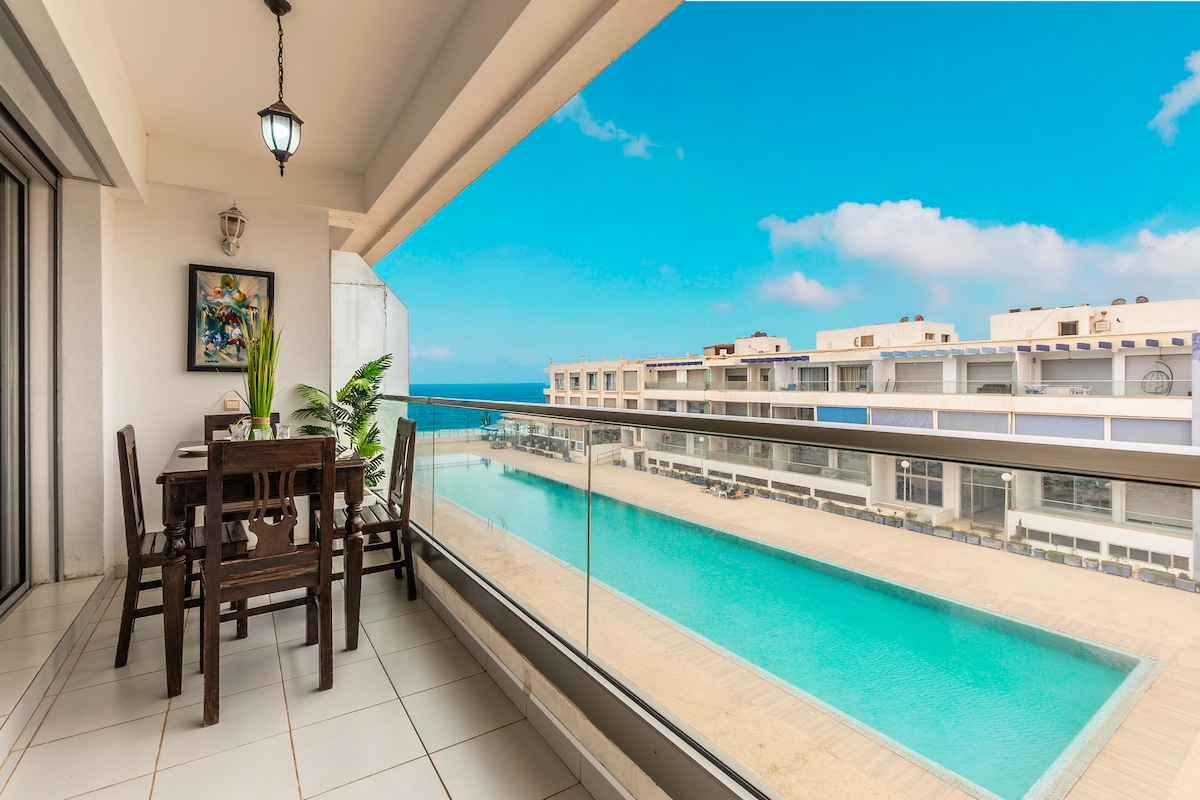 Apartamento soleado con vista al mar y piscinas | Taghazout Bay