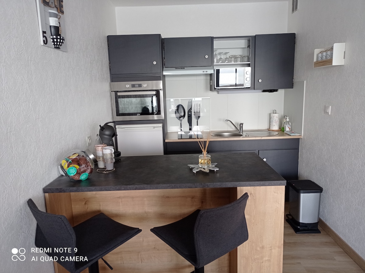 Apartamento de 32 m2 en el primer piso de una bonita casa típica del barrio de los Corderos, situado a 50 metros de la playa, las tiendas y el funicular de los acantilados. Alojamiento reformado, equipado y decorado con buen gusto. Consta de un dormitorio cálido con una cama para 2 personas, una sala de estar con cocina equipada (microondas, horno eléctrico, placa eléctrica, cafetera Senseo), una zona de comedor, un sofá, un televisor y un baño con ducha. Se proporciona ropa de cama de forma gratuita (sábanas y toallas) Cuna bajo petición El barrio de Les Cordiers, emblemático por sus casas de pescadores, está idealmente situado en el corazón de la ciudad turística de Le Tréport. Todo está disponible a 50 metros: - Comercios de proximidad (panadería, supermercado, farmacia, casa de la prensa, restaurantes...) - Ocio y turismo (funicular de los acantilados, playa, casino JOA, puerto, parque infantil y gimnasio...) Mercado local todos los martes y sábados Estación de tren de Le Tréport a unos 15 minutos a pie (autobuses regulares disponibles) No es necesario tener un vehículo para disfrutar de su estancia. El apartamento también está idealmente situado para paseos, a pie o en bicicleta. Encontrará la Bahía de Somme a 30 km con sus focas y la ciudad de St-Valery-sur-Somme. Siempre estoy disponible para aconsejarle sobre sus salidas, actividades de ocio, lugares para visitar, bares y restaurantes. ¡Nos gustaría hacer todo lo posible para que tenga ganas de volver! Horarios de llegada/salida flexibles según disponibilidad