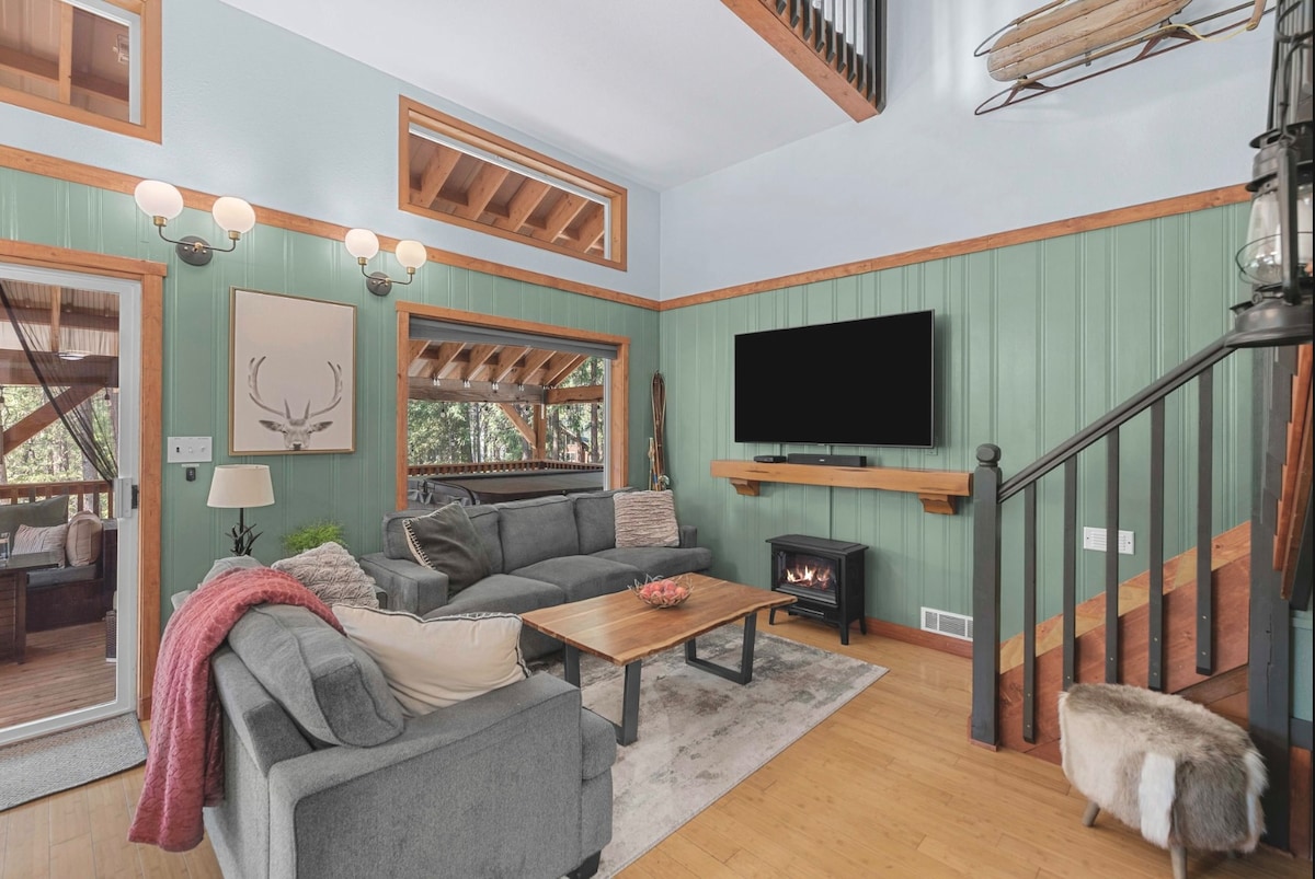 Te damos la bienvenida a una encantadora mezcla de diseño de mediados de siglo y serenidad de montaña. Ubicada entre los exuberantes árboles, nuestra cabaña ofrece una escapada tranquila donde puedes relajarte con estilo. Imagínate relajándote en el jacuzzi privado mientras disfrutas de las impresionantes vistas al bosque. Con una política que admite mascotas, tus compañeros peludos también pueden unirse a la aventura. ¿Todo listo para un retiro rejuvenecedor? ¡Asegura tu estadía ahora! Número de permiso: 000634