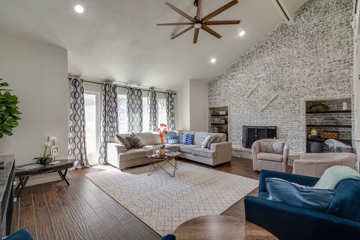 Escápate a Garland Retreat, tu oasis de 4 dormitorios que admite mascotas cerca de Dallas. Este encantador alojamiento duerme cómodamente a tu grupo y cuenta con una impresionante piscina privada y jacuzzi como pieza central del patio trasero. Con un espacio de estar de concepto abierto, televisores inteligentes en varias habitaciones y un espacio de trabajo dedicado, es perfecto para familias, amigos y trabajo remoto. Disfruta de una escapada lujosa y relajante a poca distancia en auto de las atracciones de la ciudad.