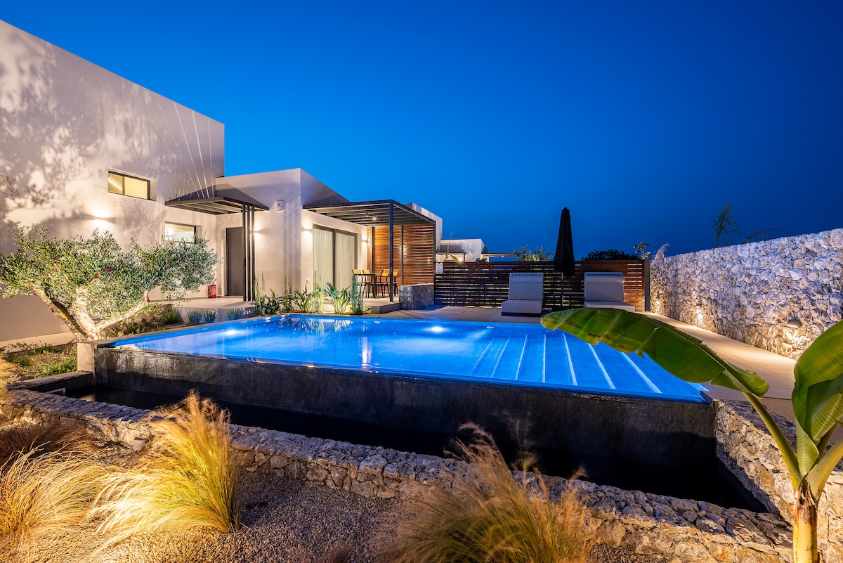 CAMP PREMIUM STAY VILLAS – TU OASIS PRIVADO EN KOS Descubre Campo Premium Stay Villas, una colección de seis lujosos refugios con piscinas privadas, enclavados en un exuberante jardín tropical. Rodeado de impresionantes vistas de las montañas, el mar y la vegetación, esta es la mejor escapada griega de verano. Orgullosamente organizadas por Filoxenia Bnb y propiedad de David y Argyro, estas villas ofrecen la mezcla perfecta de comodidad, privacidad y tranquilidad para familias, amigos o parejas.