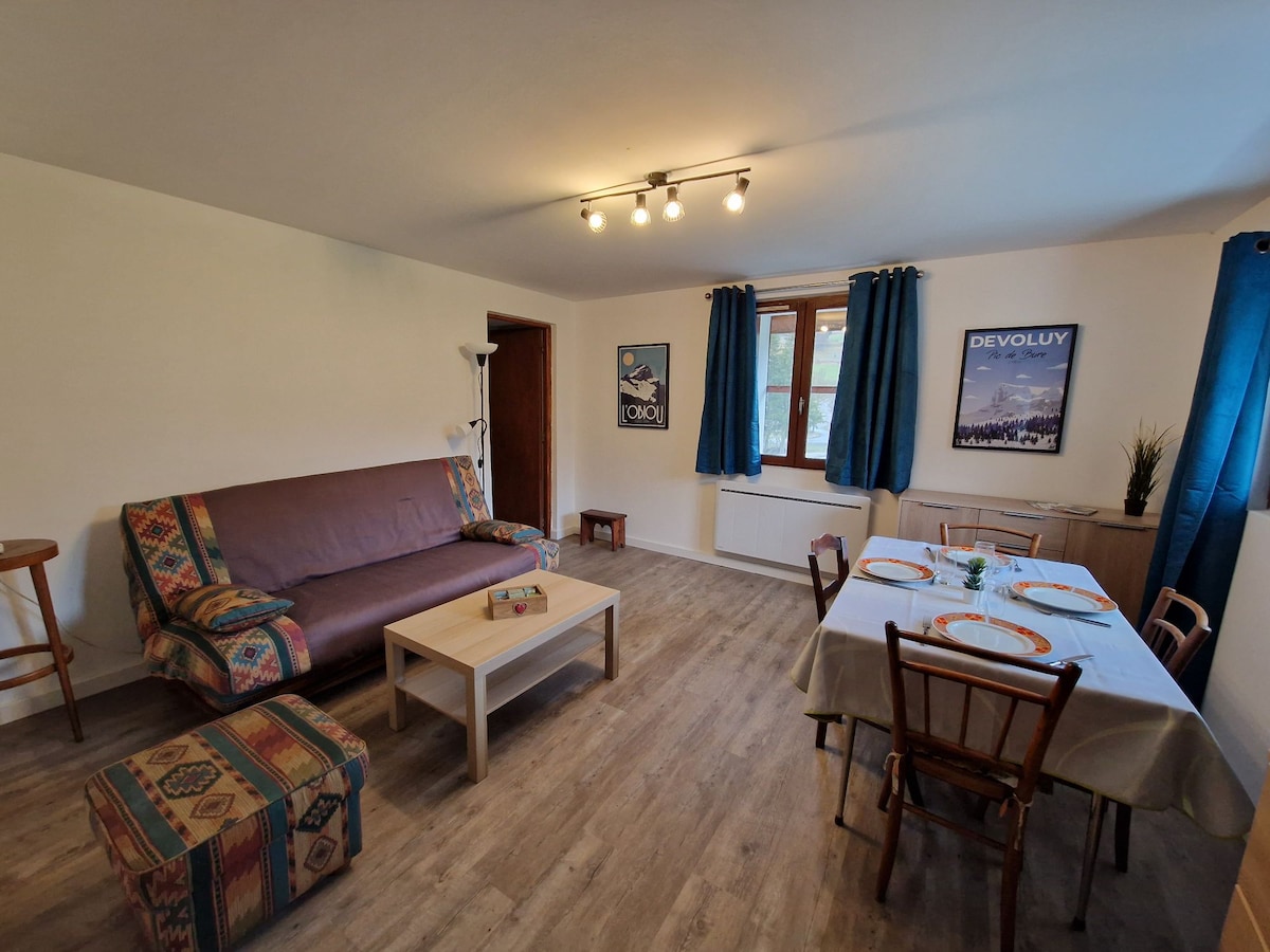 Casa rural de 45 m² con jardín, ideal para un descanso auténtico en la montaña. Fuera de la estación y magníficas vistas de las montañas circundantes: Pic de Bure, Obiou, … La casa tiene un gran jardín con la posibilidad de montar en trineo en invierno. Los que se acuesten tarde o se levanten temprano podrán observar la fauna nocturna que la atraviesa. A 7 minutos de Superdévoluy. A 15 minutos de La Joue du Loup. Paseos y caminatas de todos los niveles desde la casa. Centro de bienestar, centro deportivo y spa cerca.