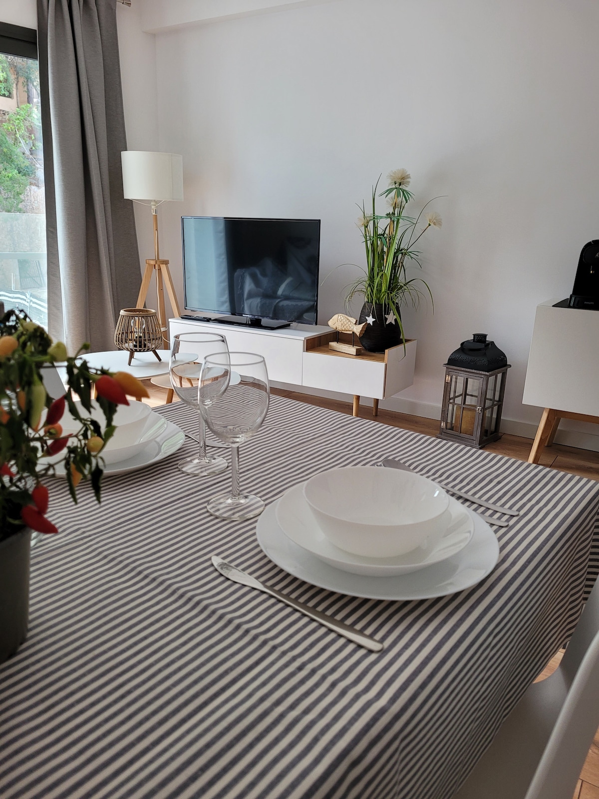 Apartamento a 50 metros de la playa, totalmente reformado, y en pleno centro de Platja d'aro. El apartamento es de 70 m2 y dispone de todas las comodidades para su uso. El apartamento cuenta con un precioso salón-comedor con un pequeño balcón. La cocina cuenta con lavadora, lavavajillas, microondas y cafetera Nespresso. El apartamento dispone de dos habitaciones. La primera es habitación suite con baño propio y cama de matrimonio. La segunda habitación dispone de dos camas individuales.