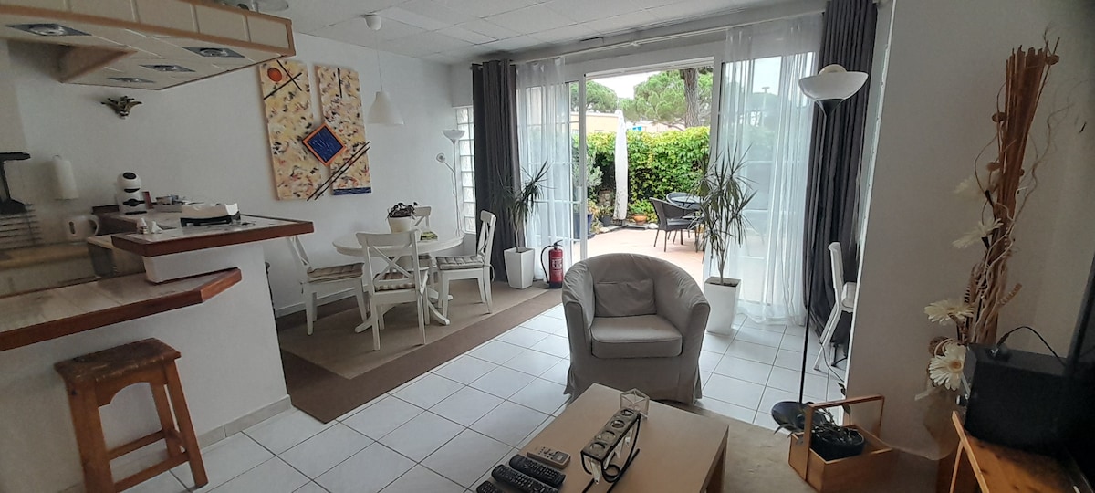 Apartamento de invitados con jardín y piscina.