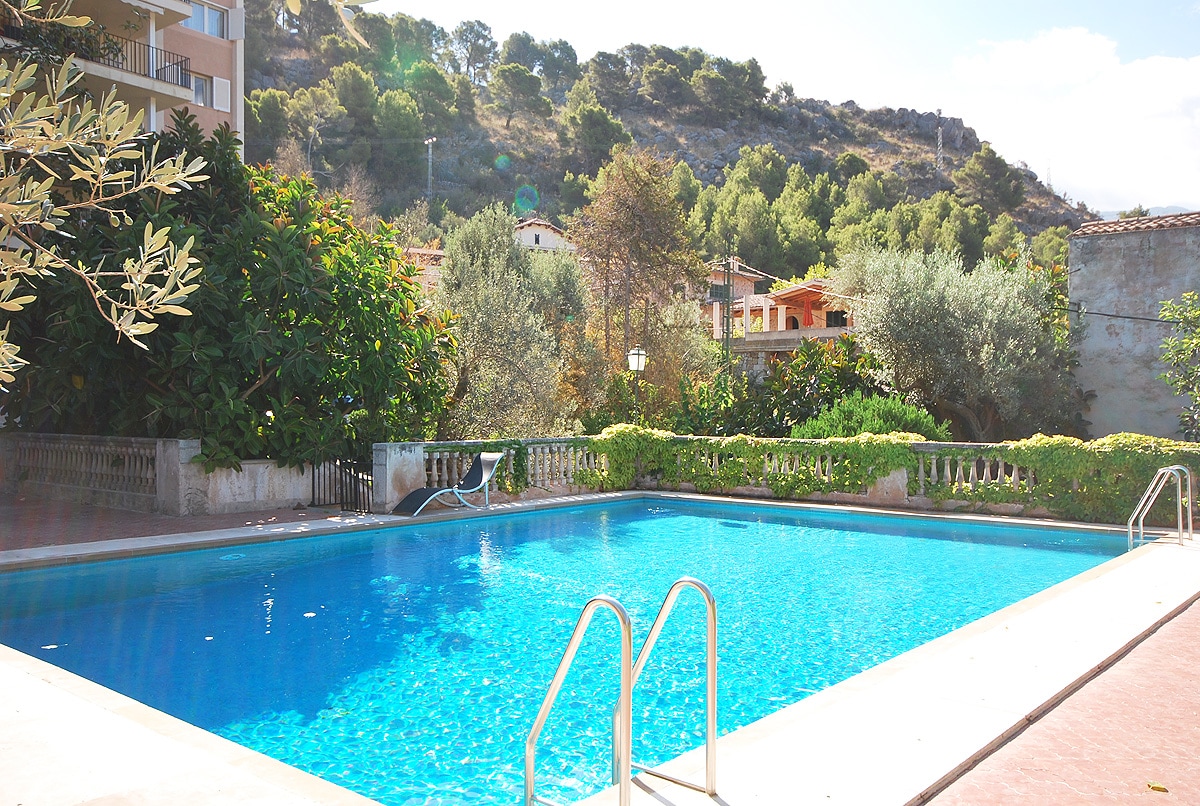 Un apartamento especialmente indicado para disfrutar en grupos de amigos o familia, sus amplios espacios interiores y exteriores garantizan una convivencia cómoda y relajada 74 hectáreas de finca ubicada en un entorno espectacular de árboles, vegetación, jardines de rosas, estanques y fuentes de agua natural en plena Sierra de Tramuntana declarada Paisaje Patrimonio de la Humanidad