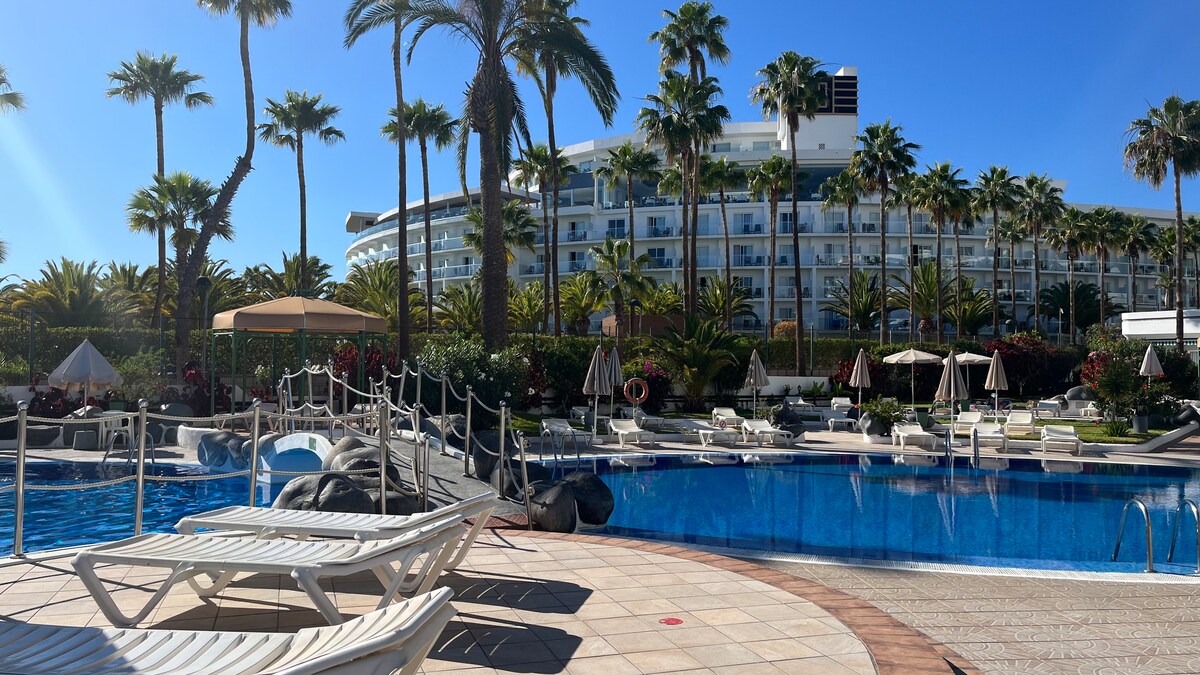 Este apartamento de lujo esta muy centrico .tine una cama grande en dormitorio y una sofa cama en salón- Complejo está frente playa de duque .todas las fotos de piscina son de hotel donde se encuentra este apartamento . Balcón tiñe una vista a mar de lado