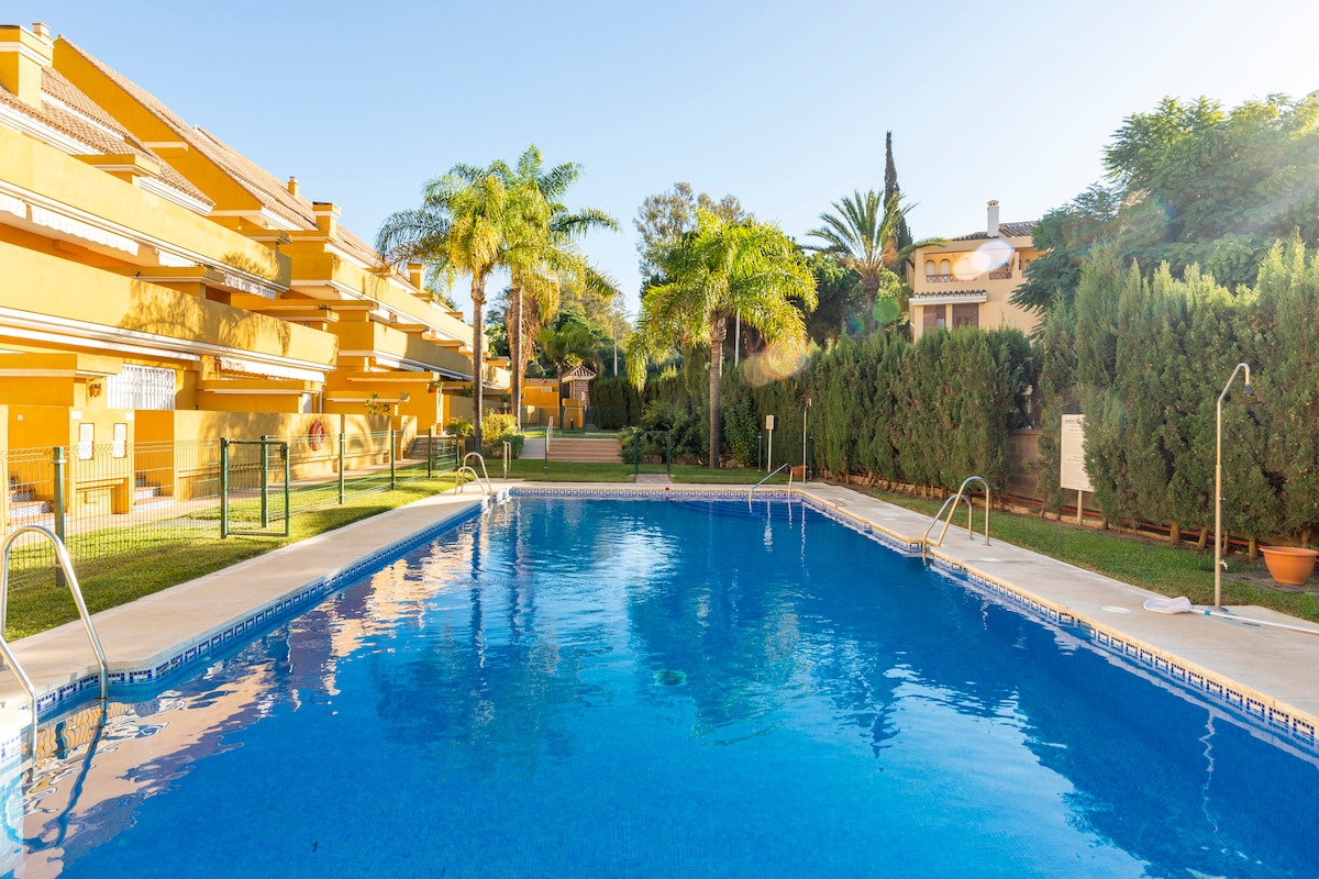 Si estás buscando tranquilidad, cercanía a la mejor playa de Marbella y poder ir andando a todos los servicios esta casa te interesa. La casa está situada en uno de los mejores complejos de Elviria. Por qué? Porque tiene orientación sur, es una urbanización muy tranquila, tiene una piscina salada con hamacas donde poder descansar y relajarte y la distancia a la playa son 3 min andando. Según dicen los expertos es la mejor playa de Marbella. Por cierto la urbanizacion se llama Marbella Playa.