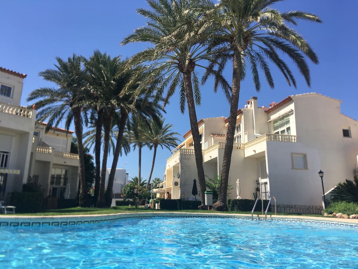 Luminoso apartamento a 7 minutos a pie de la playa Les Marines. Extra confortable, ideal para corta y larga estancia, con aire acondicionado en todas las habitaciones, wifi de 600 MB y vistas a palmeras y piscinas, abiertas los 365 días del año. Con acceso directo a terraza privada, plaza de aparcamiento cubierta y todas las comodidades. Un oasis de tranquilidad a 2 minutos andando de supermercados y tiendas. ¡El lugar perfecto para disfrutar del Mediterráneo!
