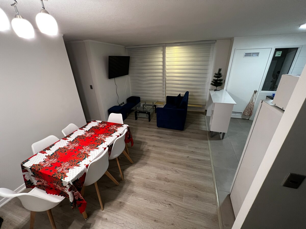 El departamento está totalmente equipado. Cuenta con menaje, tv cable más aplicaciones, wifi, cocina, baño con agua caliente(sin toallas), ropa de cama, terraza balcon con parrilla eléctrica y estacionamiento en el recinto. A pasos de la playa Los Enamorados *El estacionamiento es 1 cupo por reserva, sin rotación de vehículo. Medidas máxima del vehículo. Altura 2,40mts/Ancho 2,50mts/Largo 6mts *No se permiten visitas, ni cambio de huéspedes *No se permite volumen excesivamente alto de todo tipo